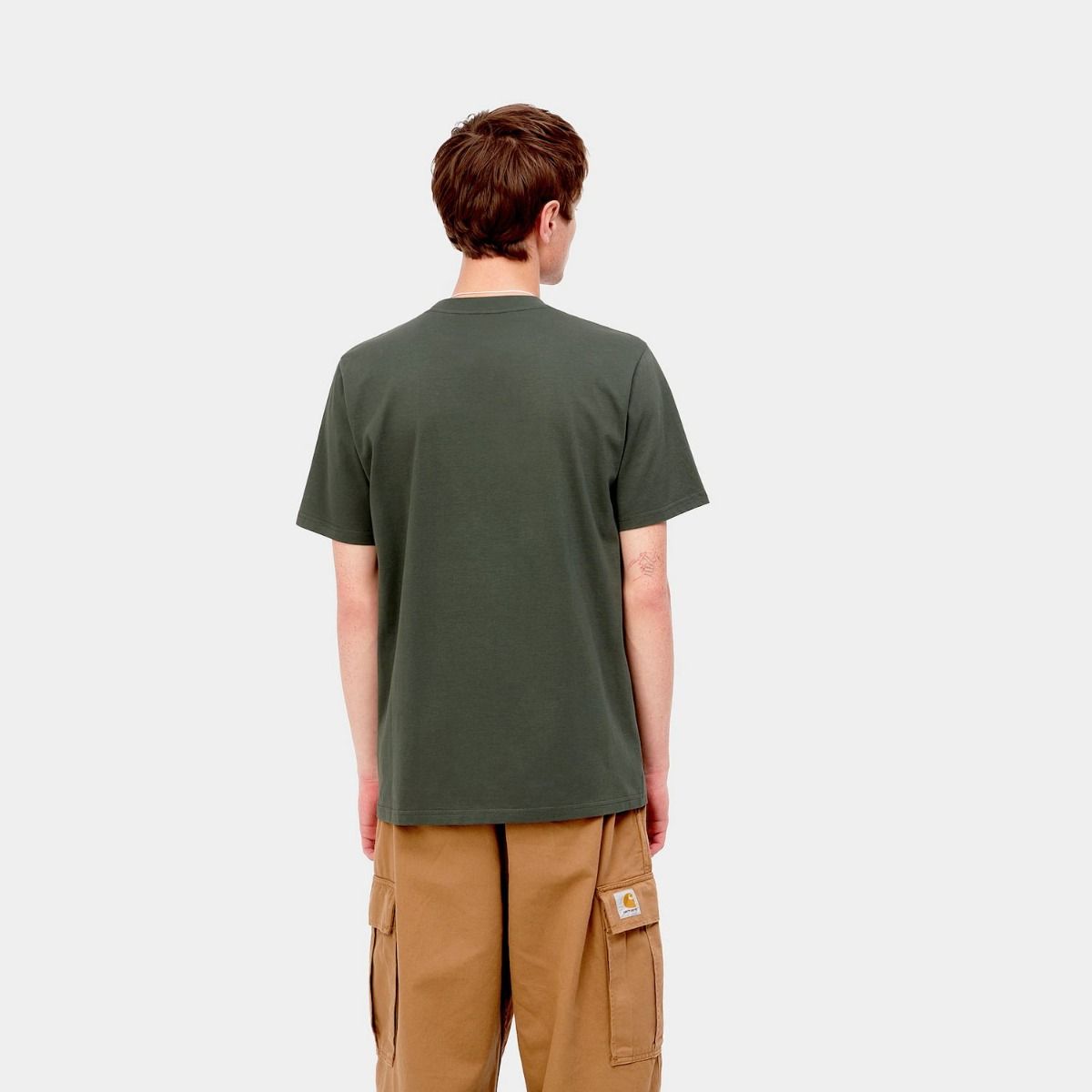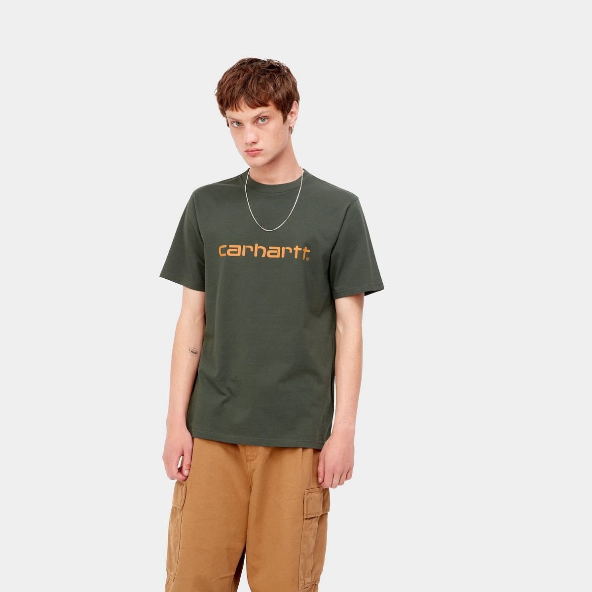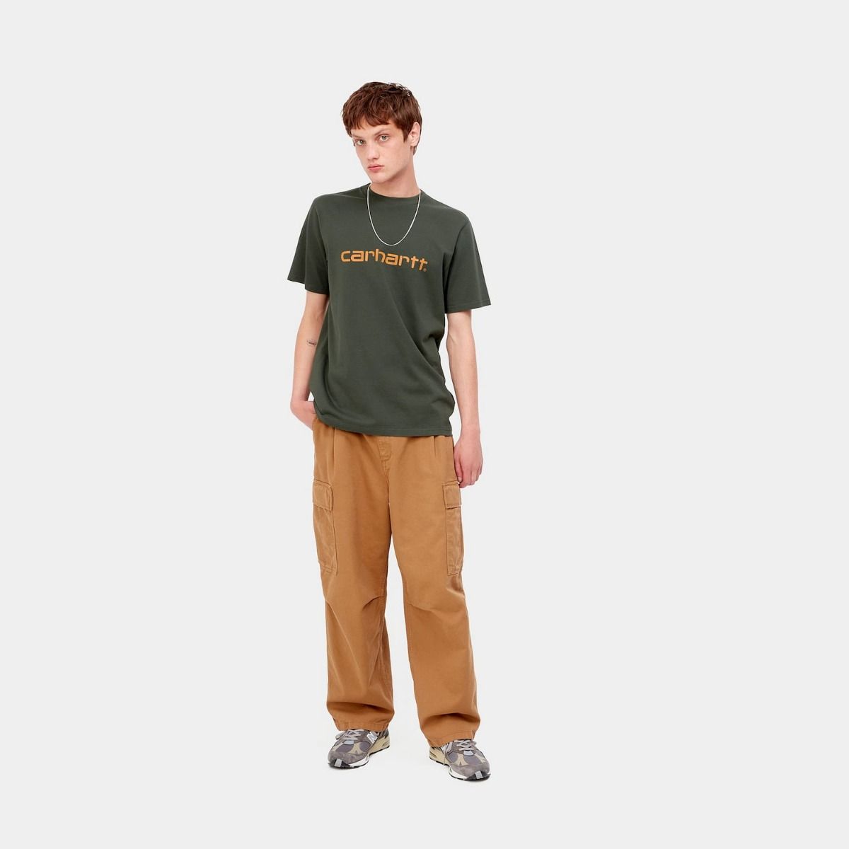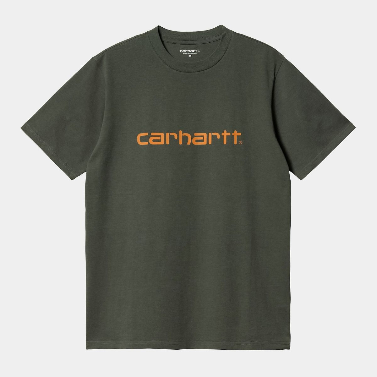La camiseta de manga corta para hombre Script en verde con el logo en ocre (Boxwood/Ochre) de Carhartt WIP está confeccionada con tejido punto jersey de algodón sencillo (190g/sqm).