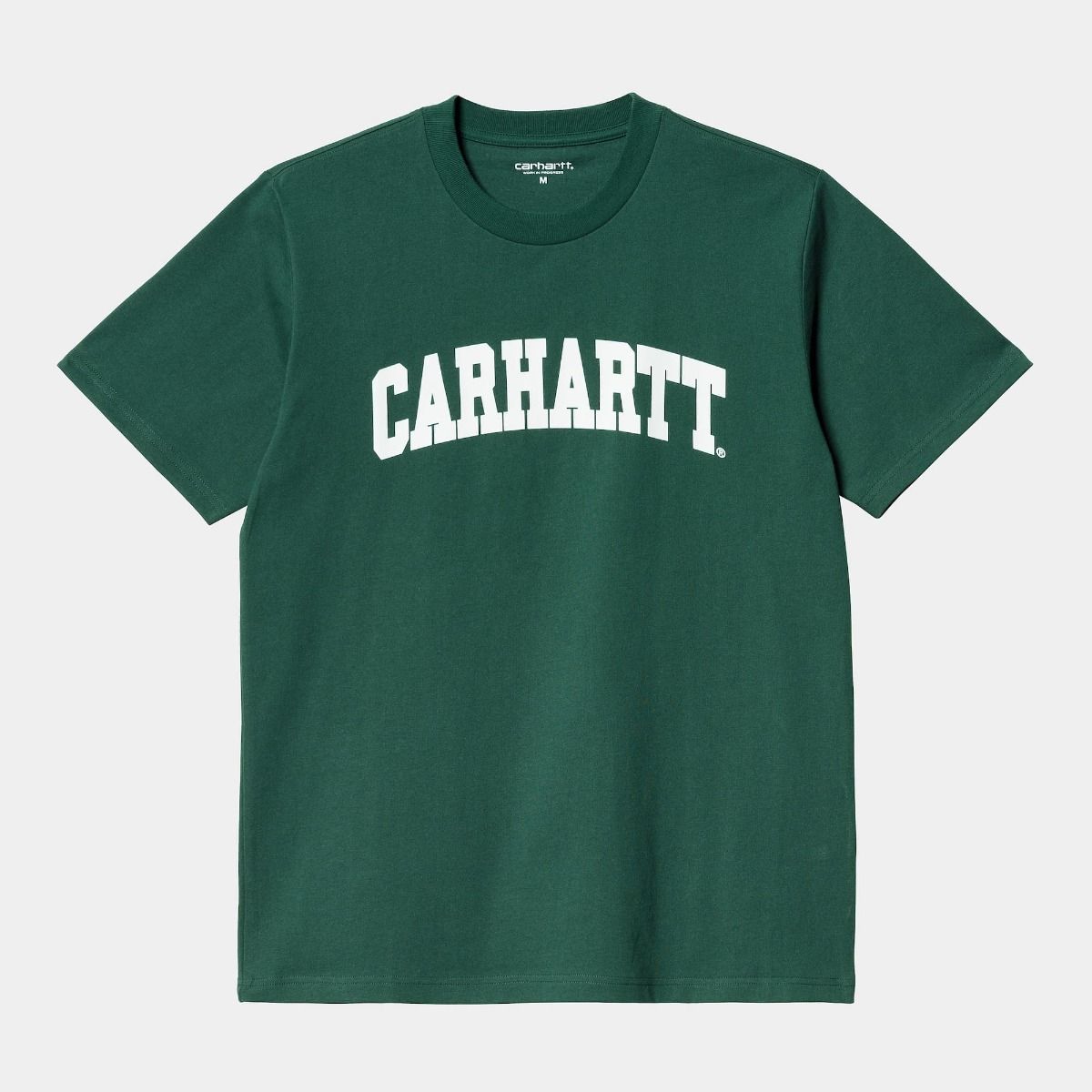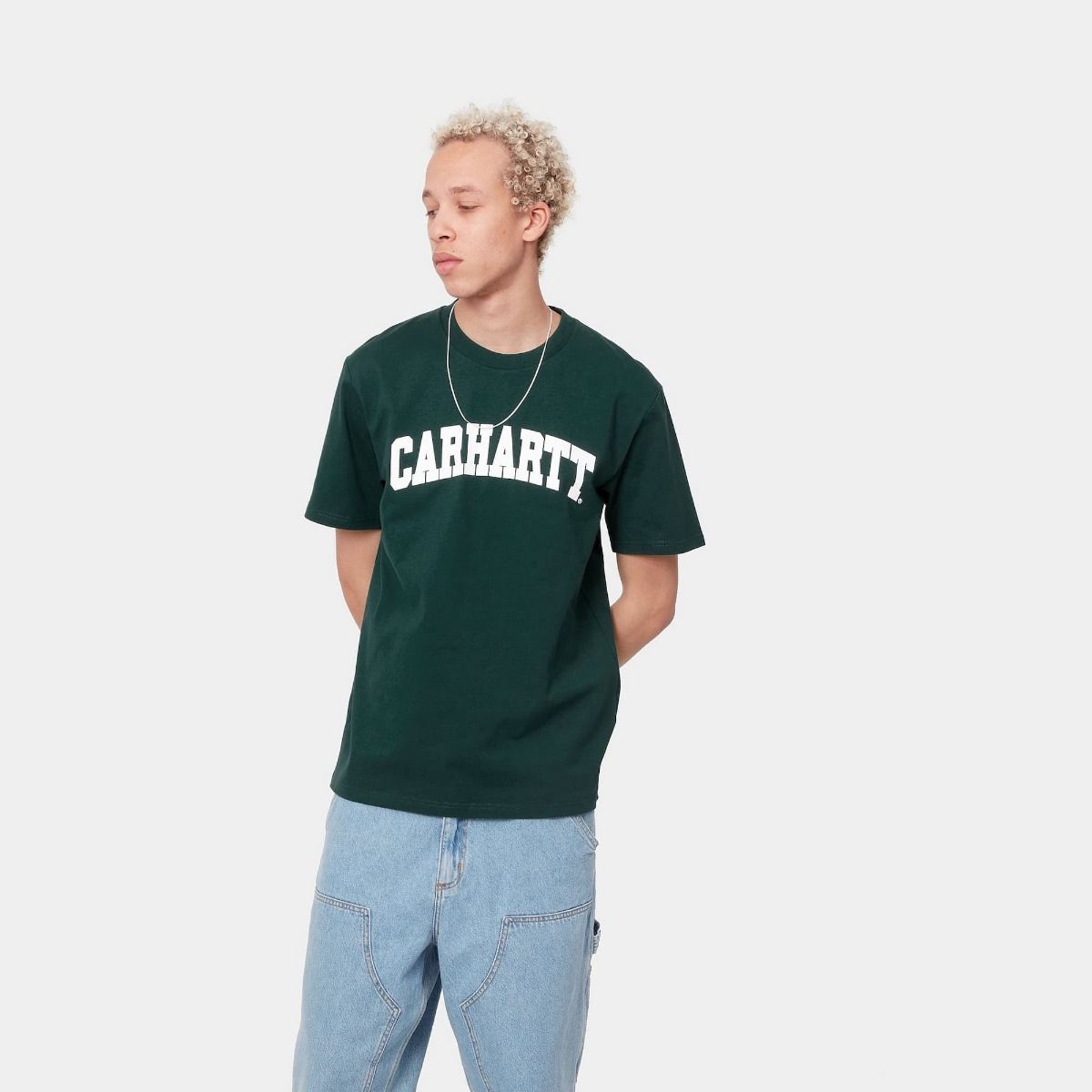 La camiseta de manga corta para hombre University T-Shirt verde de Carhartt WIP está confeccionada con 100% tejido punto Jersey de algodón sencillo.