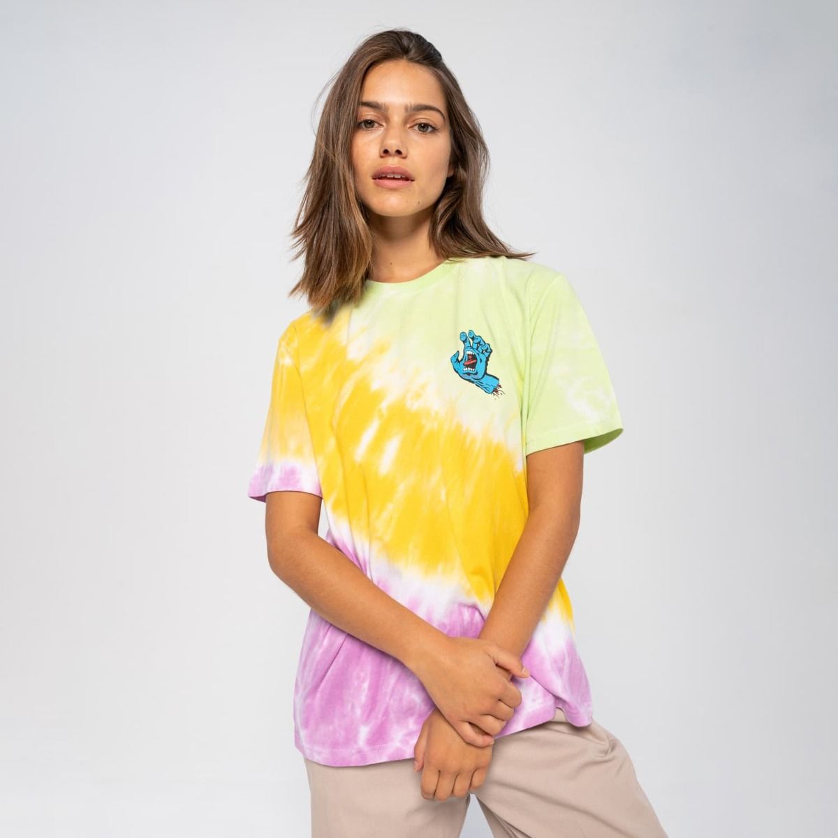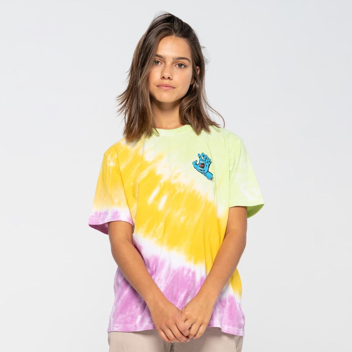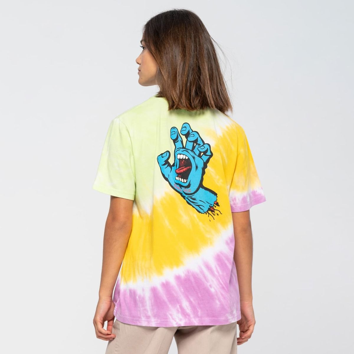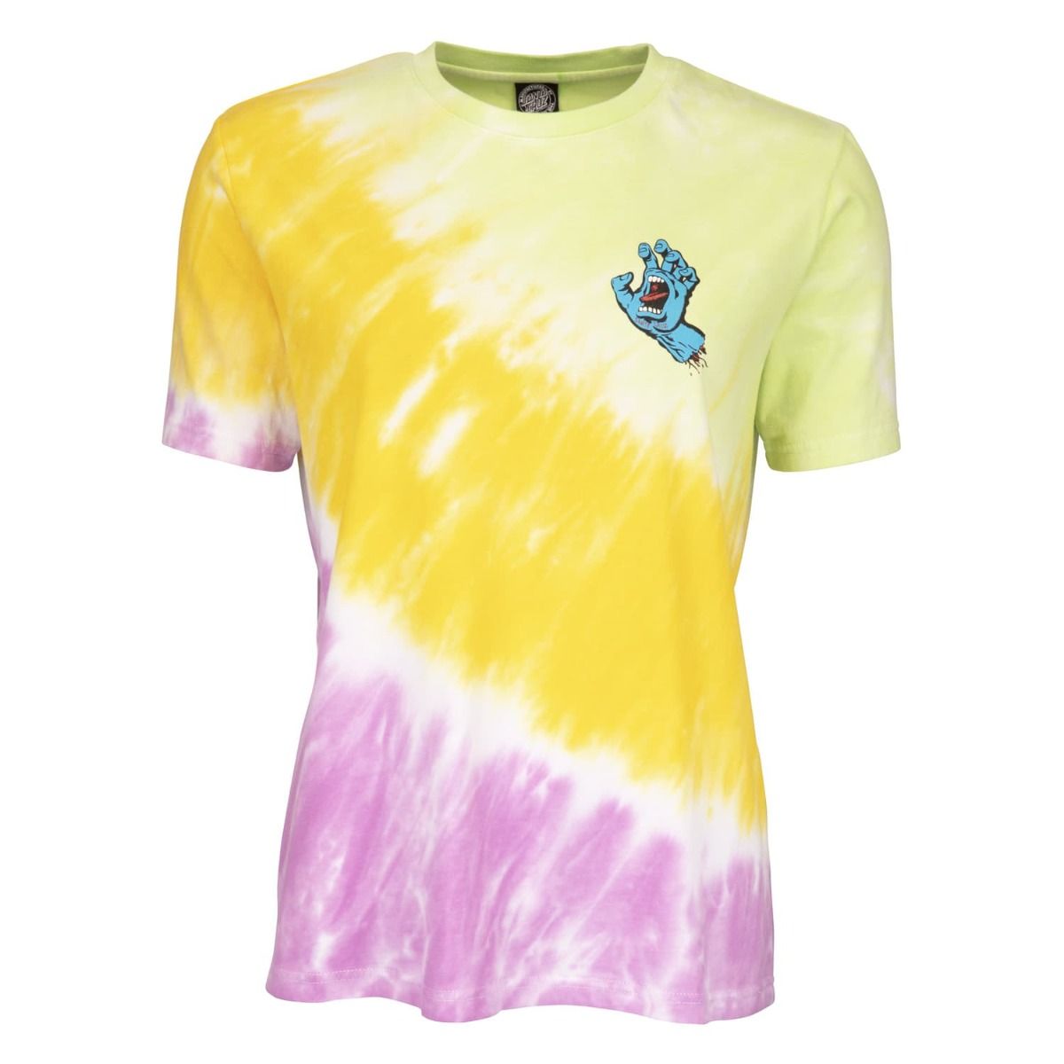 La camiseta de manga corta para mujer Screaming Hand Chest con estampado Tie Dye multicolor (Popsicle) de Santa Cruz ha sido confeccionada con algodón 100% (160g/m2).