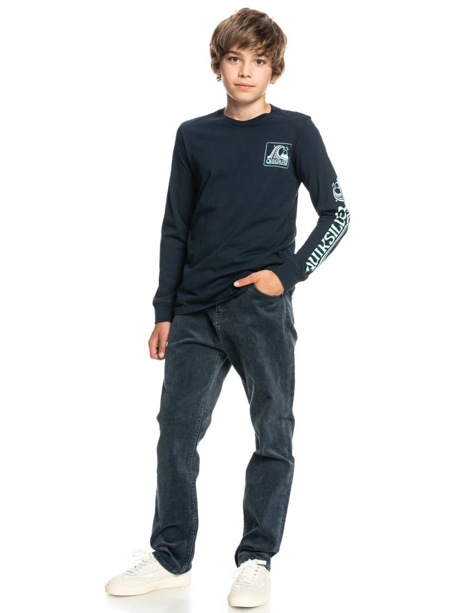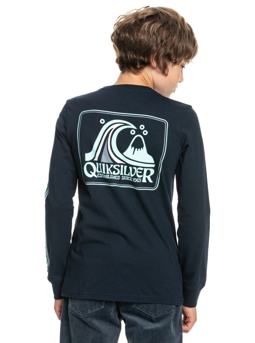 Esta camiseta de corte normal, clásico y cómodo, cuenta con cuello redondo con punto de canalé, manga larga y una ilustración artística con el logo de Quiksilver estampado en el pecho izquierdo, la manga y la espalda.