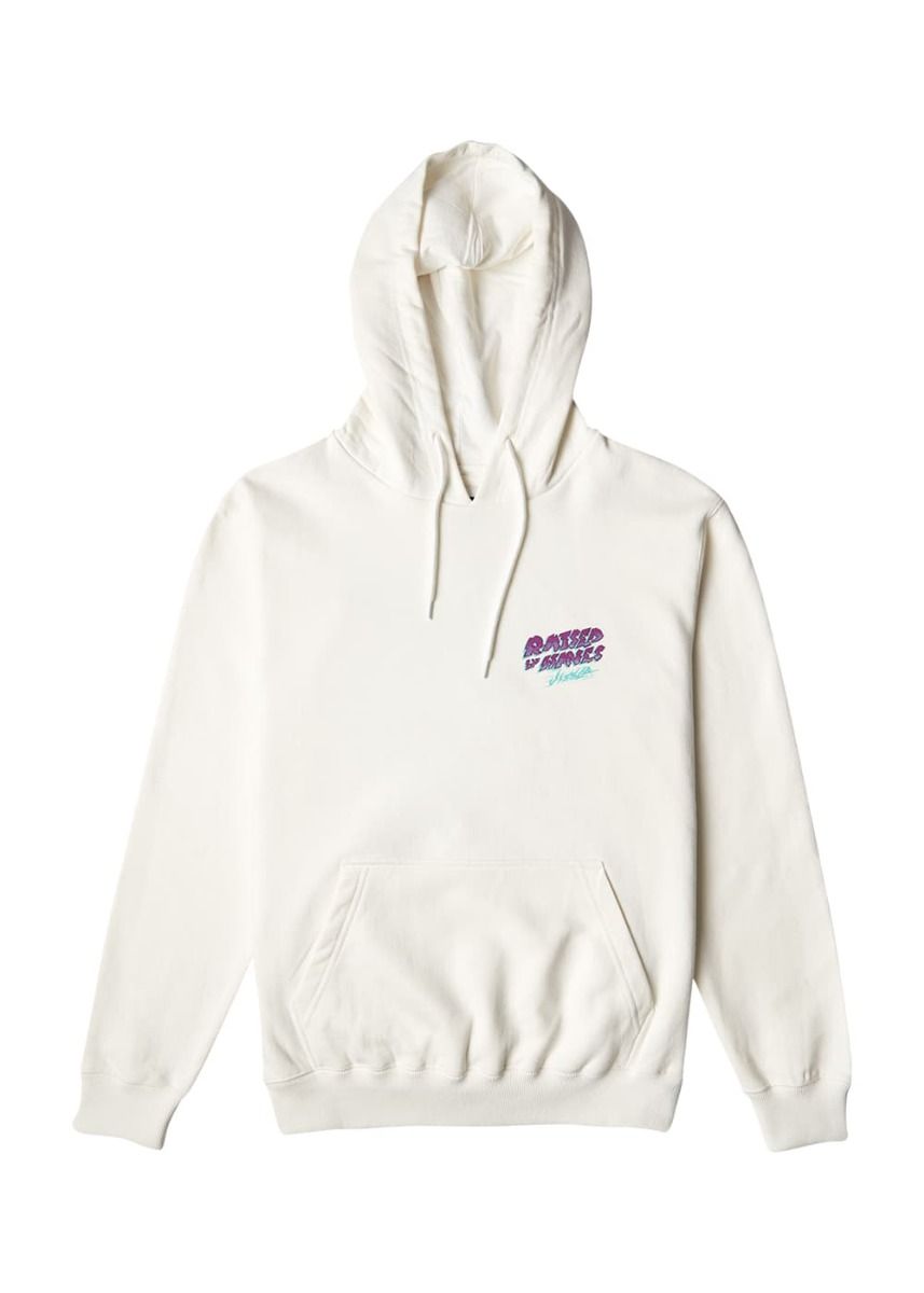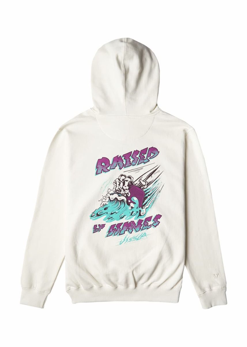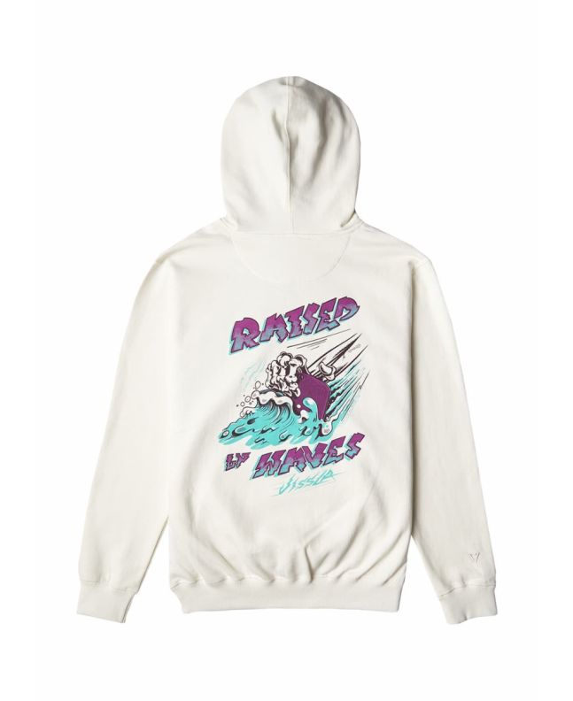 Este cálido hoodie sostenible, perteneciente a la Colección "Shapers Atelier" que rinde homenaje a la cultura del surf, cuenta con capucha ajustable mediante cordón, tejido interior de forro polar cepillado, punto canalé en mangas y dobladillo inferior, un bolsillo tipo canguro, serigrafiado "Raised by Waves-Vissla" impreso en el lado izquierdo del pecho y en la zona posterior, junto con un gráfico de una ola en la espalda.