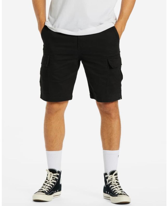 Short cargo Billabong Combat negro para hombre en sarga de algodón con ajuste relajado y 6 bolsillos funcionales.