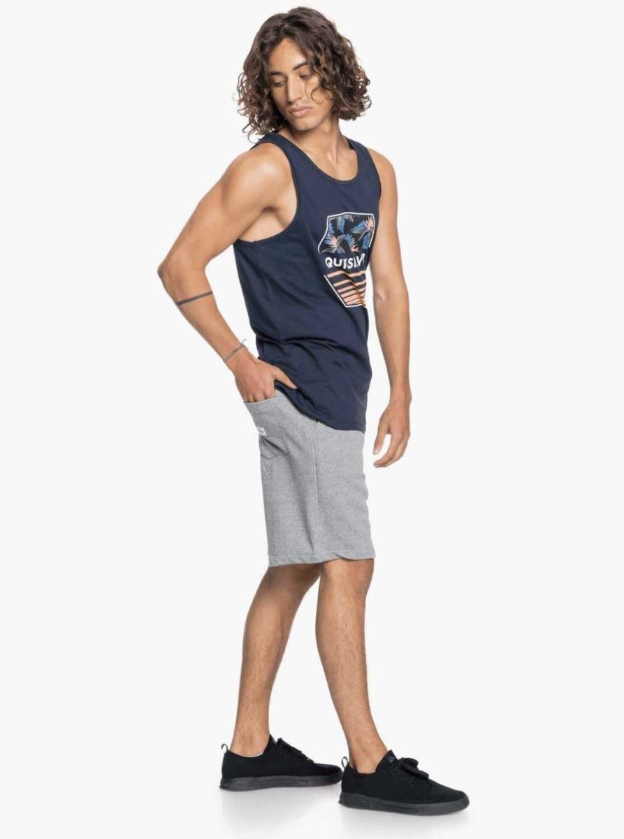 El short de felpa para hombre Essentials 19" de Quiksilver está confeccionado con tejido mezcla de algodón orgánico y poliéster reciclado.
