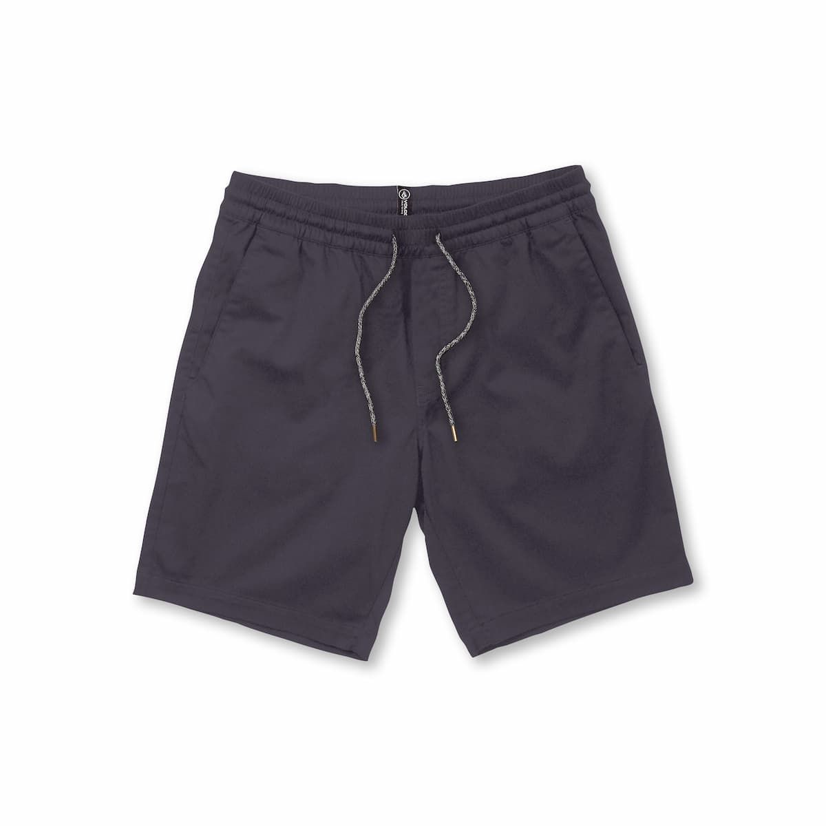 El pantalón corto elástico para hombre Frickin Elasticated Waist Short 19" en gris (Charcoal) de Volcom está confeccionado con tejido pre-lavado en mezcla de 59% algodón, 39% poliéster reciclado (fibras recicladas REPREVE®) y 2% elastano.