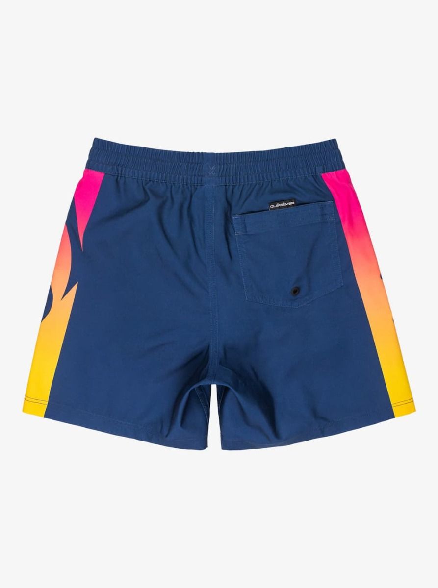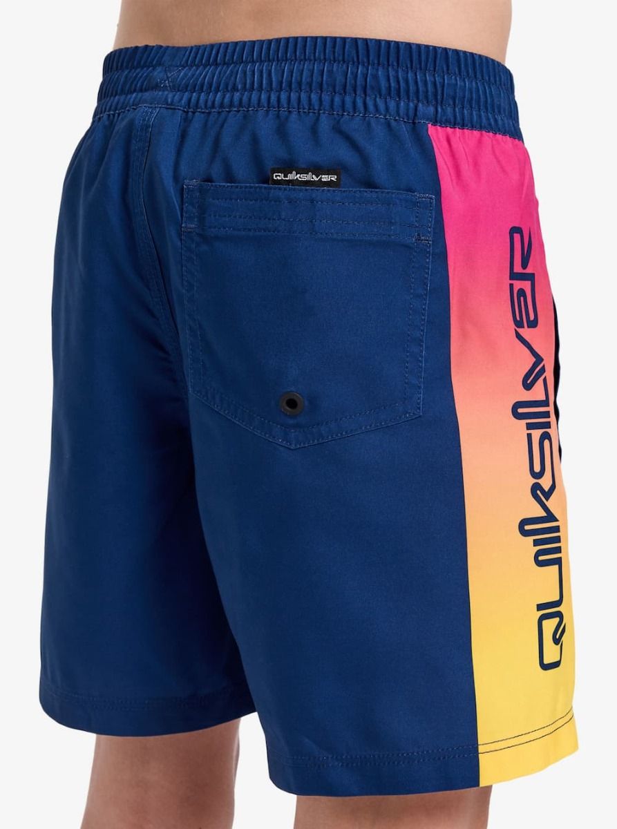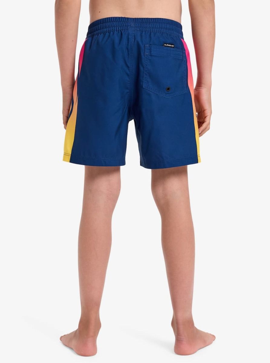 Boardshort Quiksilver para niño en color azul Estate Blue, con diseño retro degradado, cintura elástica y tejido reciclado Supersuede. Ligero, cómodo y hecho para moverse.