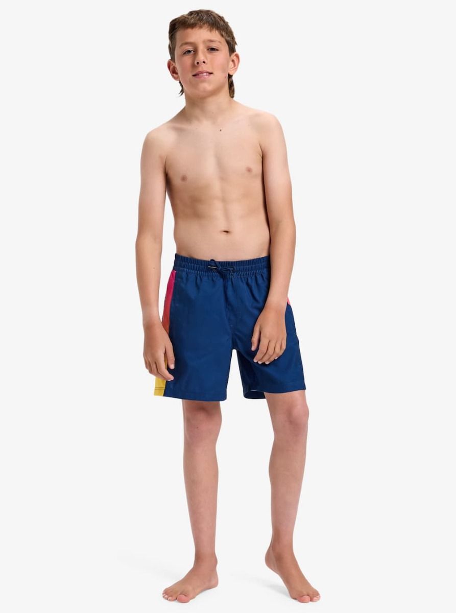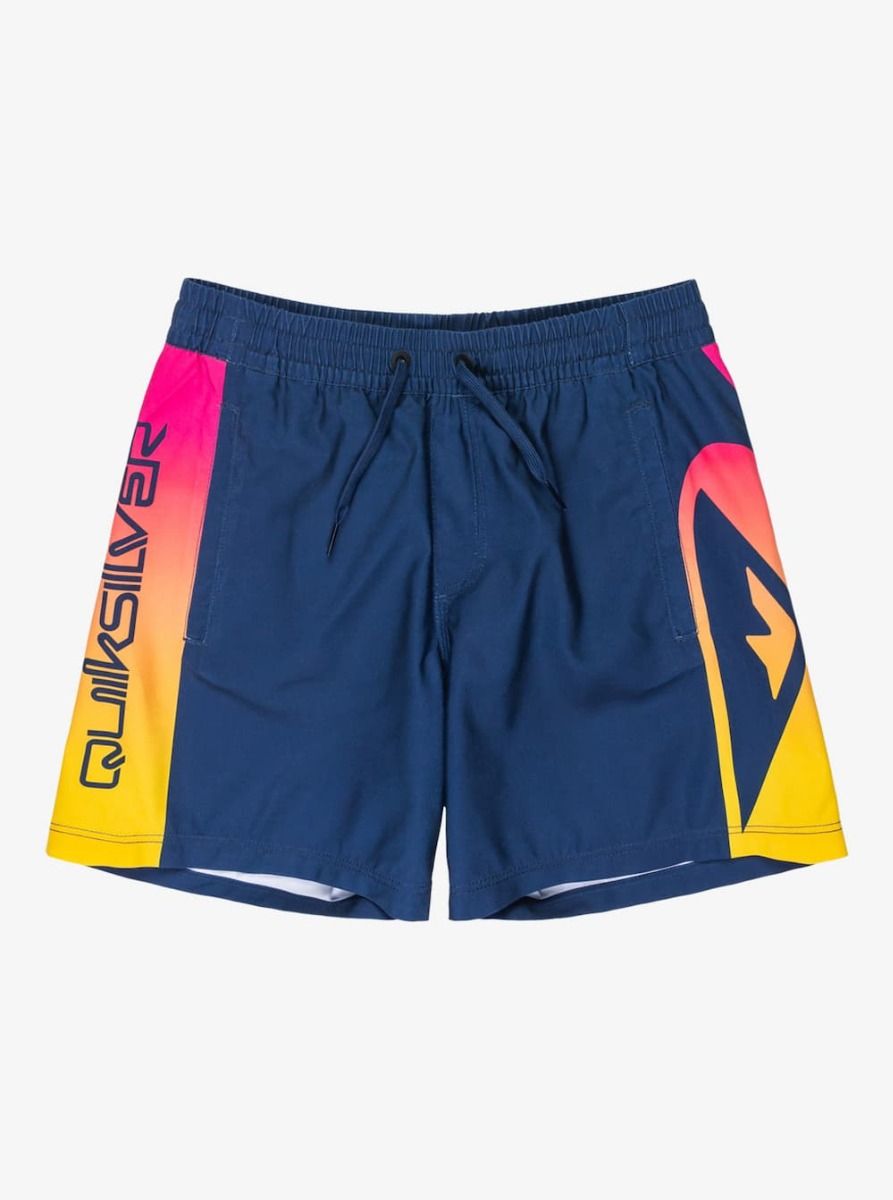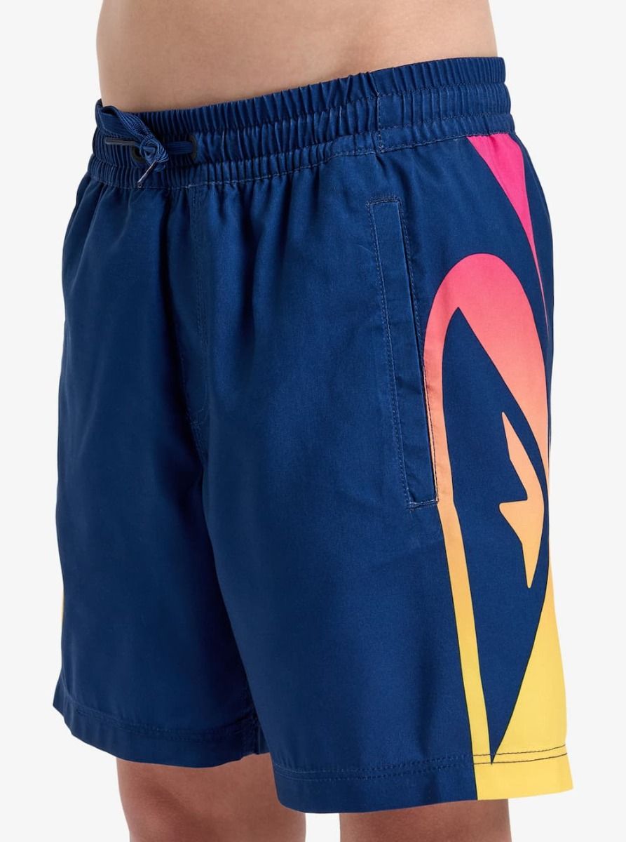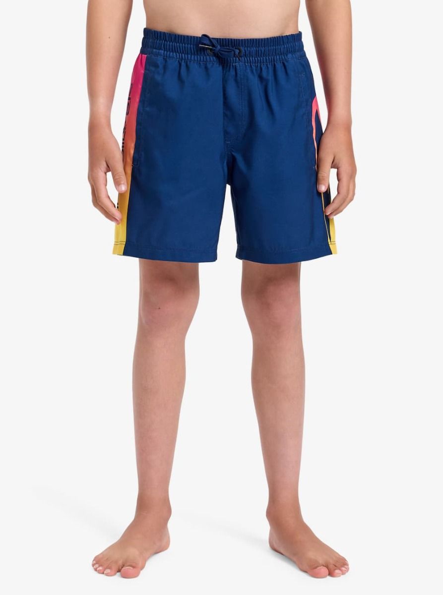 Boardshort Quiksilver para niño en color azul Estate Blue, con diseño retro degradado, cintura elástica y tejido reciclado Supersuede. Ligero, cómodo y hecho para moverse.