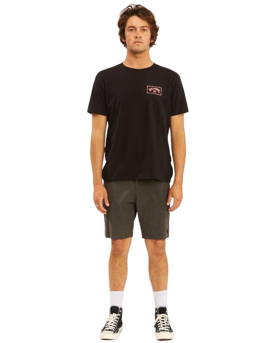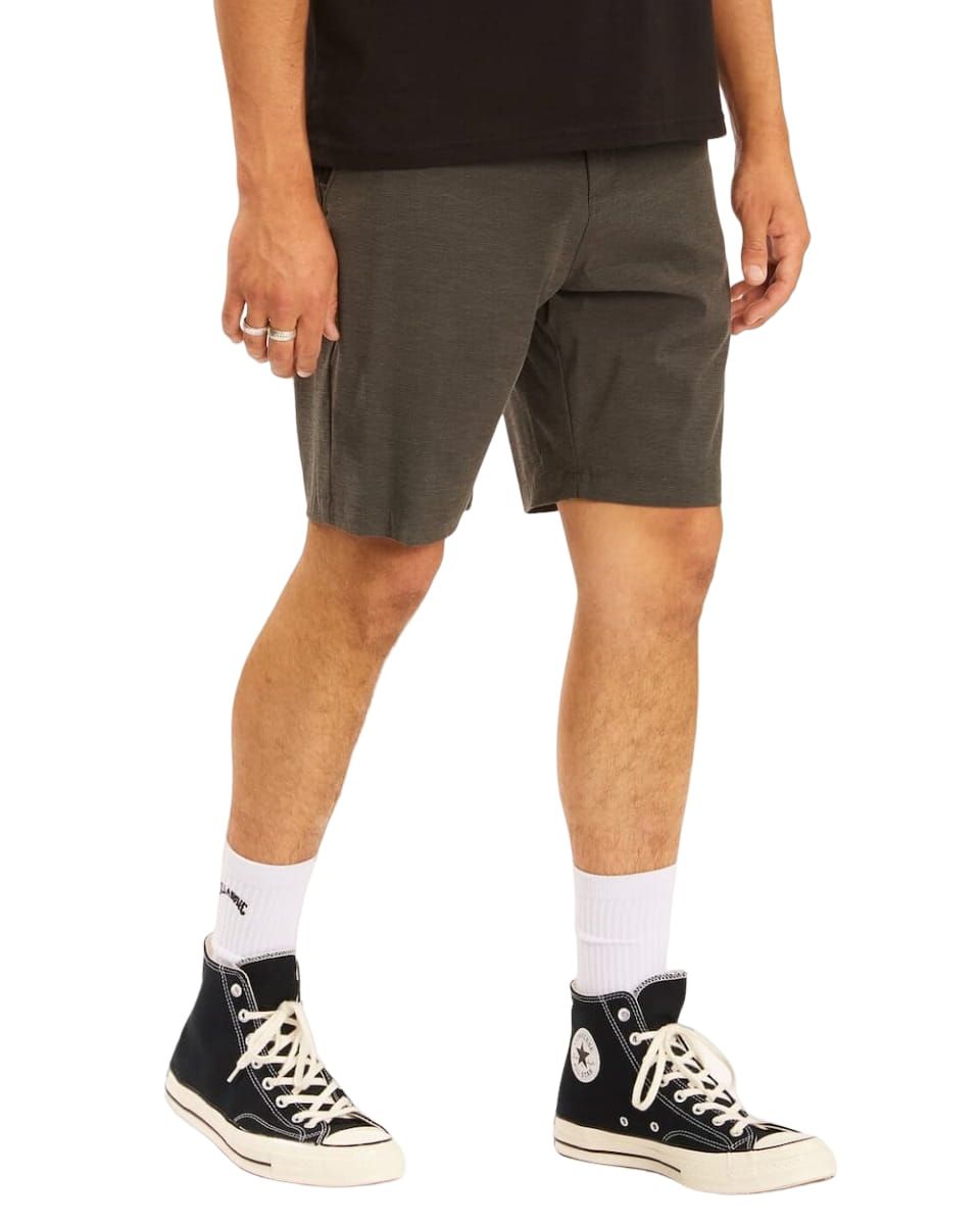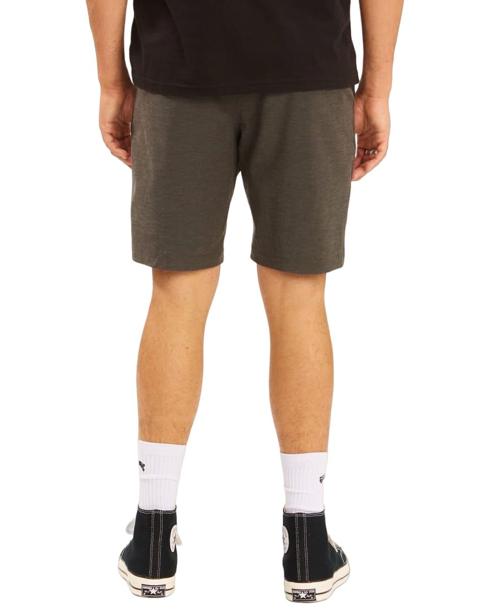 El pantalón corto híbrido para hombre Crossfire Mid Submersible Walkshort en gris (Asphalt) de Billabong está confeccionado con tejido ecológico elástico en 4 direcciones fabricado a partir de botellas de plástico recicladas PET (64% poliéster reciclado, 22% algodón orgánico, 8% elastano y 6% poliamida), junto con tejido Micro Repel para un secado más rápido.