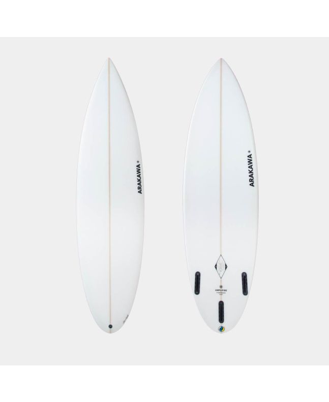 La tabla de surf Amplifire de Erik Arakawa es uno de los modelos más antiguos de este famoso shaper pero actualizada año tras año bajo los consejos de los mejores surfers del mundo entero . Es una tabla corta de rendimineto versátil para cualquier surfista con un nivel avnazado que busque velocidad y maniobrabilidad. Fabricada en resina. Tiene un rocker más bajo que su predecesor, el K4. Y un cóncavo más amplificado en la mitad de la tabla haciendo de ella un shortboard mucho más rápido.
