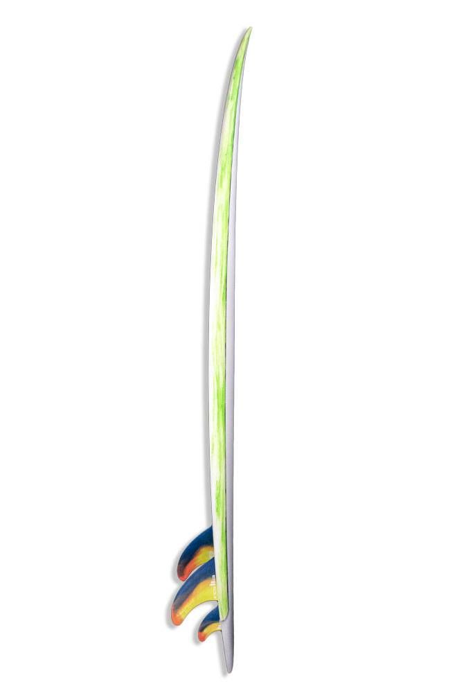 Es un shortboard para olas pequeñas muy fácil de manejar. Cuenta con un rocker de entrada más bajo, nose y tail más anchos, y un par de pulgadas de ancho más en el contorno general.