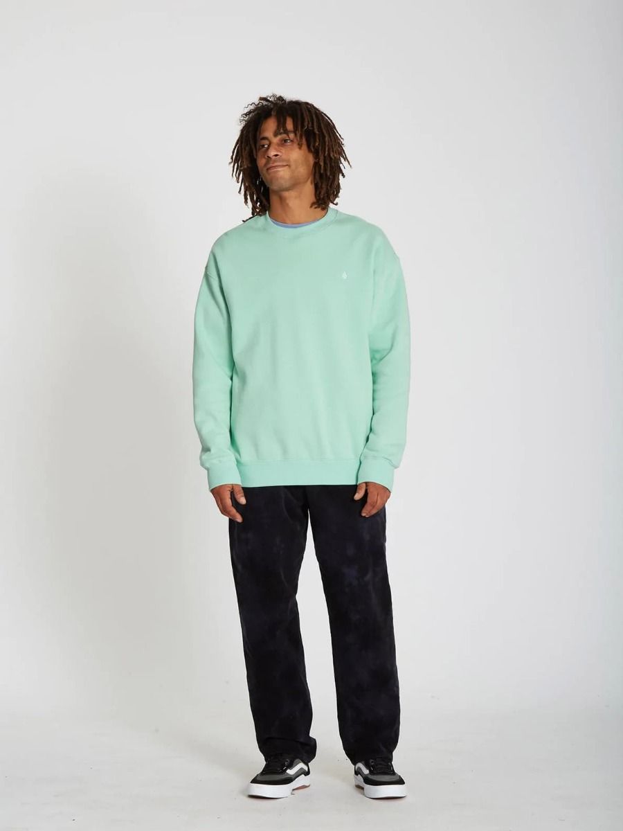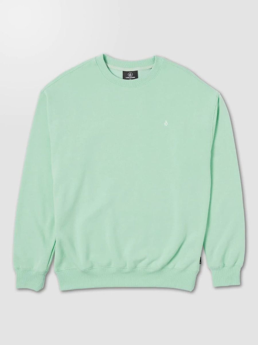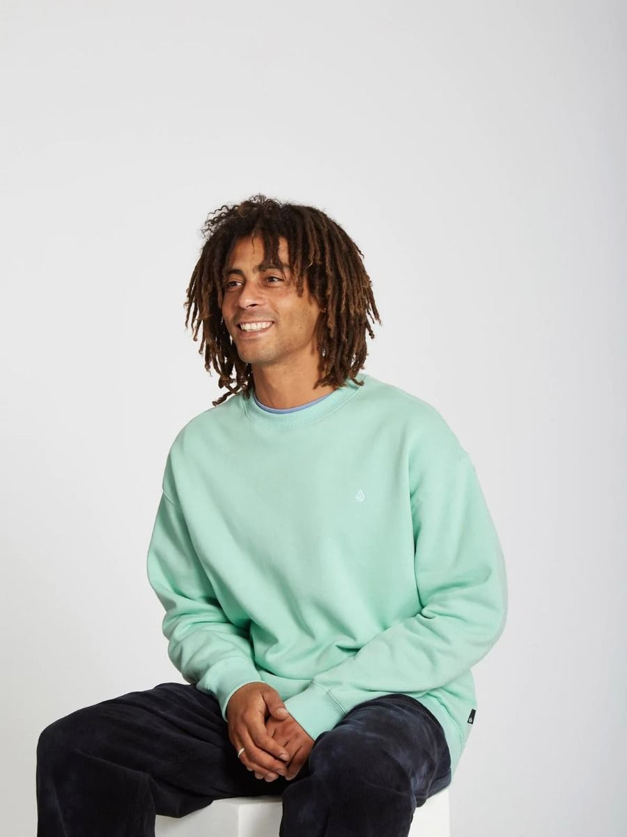 La sudadera sin capucha para hombre Single Stone de Volcom en verde (Lichen Green) ha sido confeccionada con tejido de forro polar mezcla de algodón (80%) y poliéster (20%) con fibras recicladas Repreve™(290g).