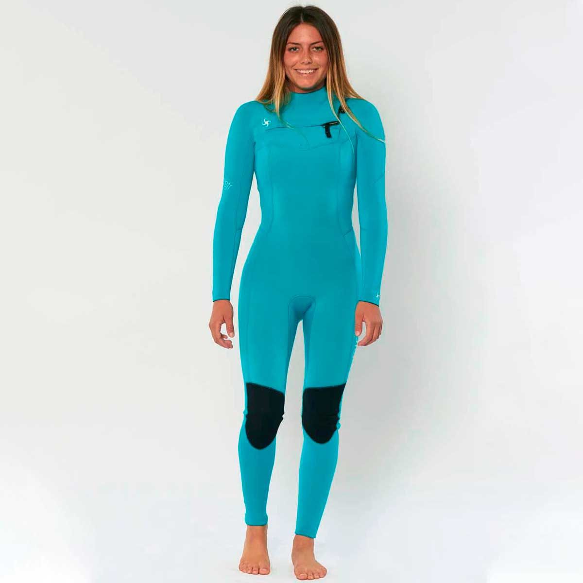 El traje de surf de neopreno con cremallera en el pecho para mujer Seven Seas 3/2mm en turquesa de Sisstrevolution está confeccionado con Neopreno superelástico de base calcárea japonesa (limestone).