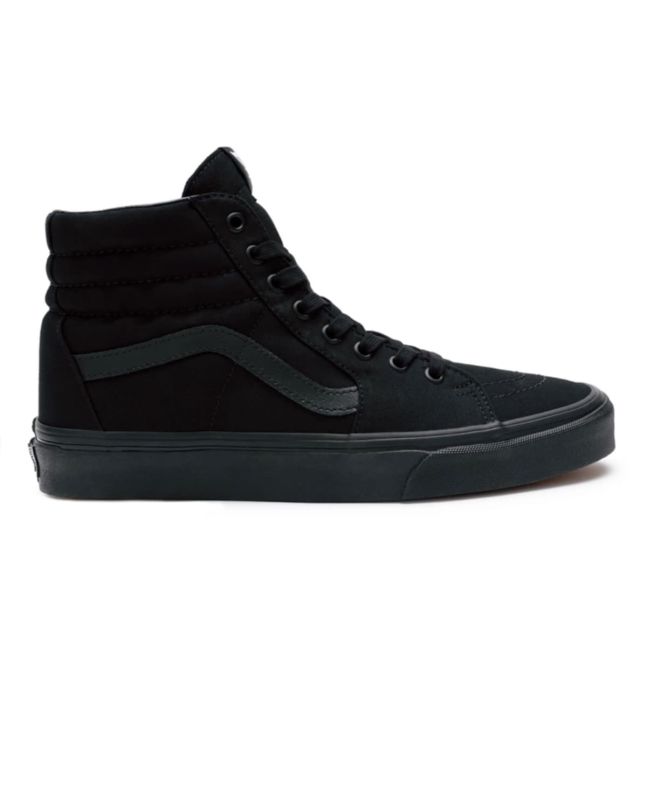 Las Zapatillas de caña alta SK8-HI de Vans en color negro con la banda lateral en negro han sido fabricadas con un 92 % de lona y 8% de cuero.