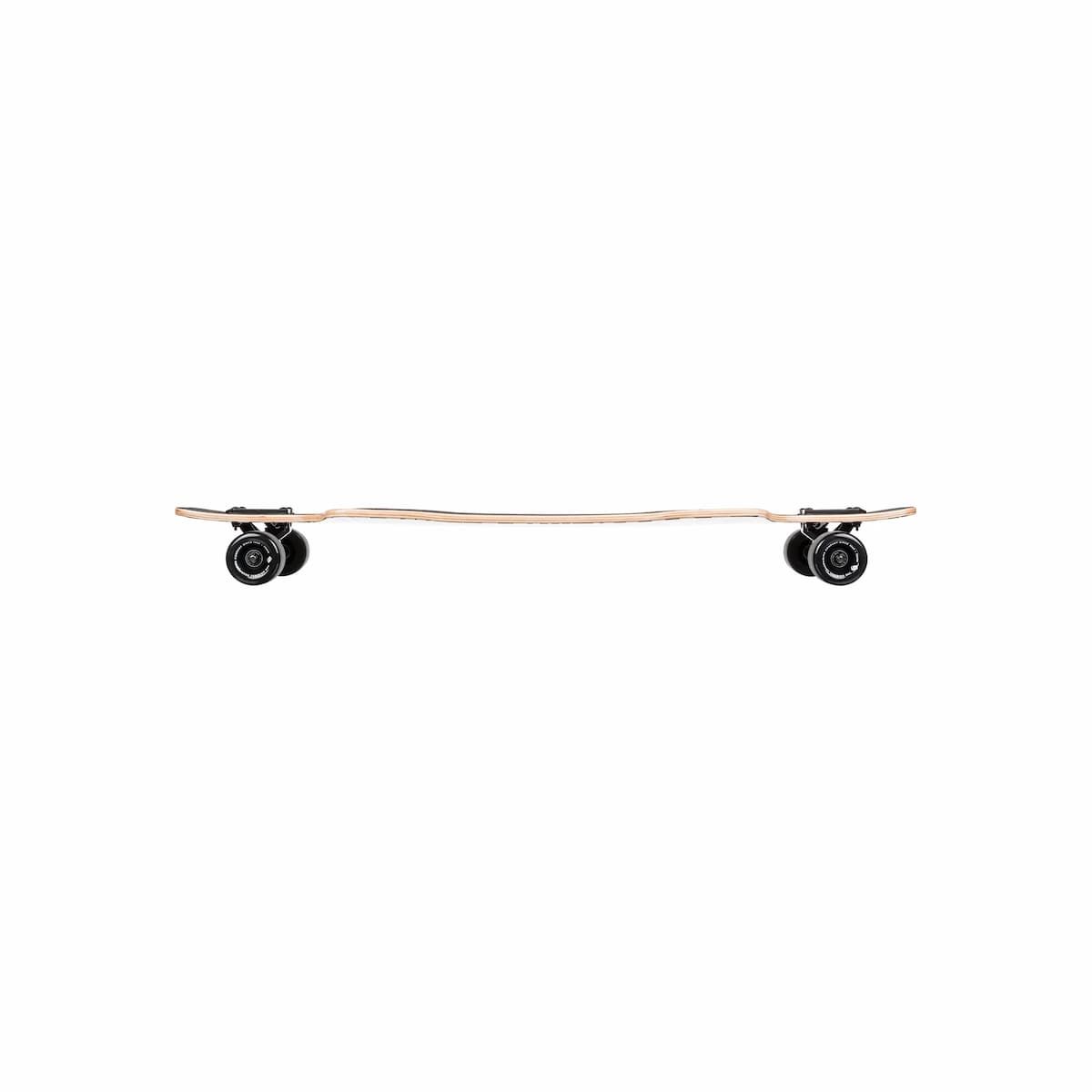 Este skate longboard cuenta con tabla twin tip drop-through mount cóncava, deck de abedul de 40" x 9.25", rodamientos ABEC 9 (608 2 RS), ejes Kingpin invertidos de 7" con pads separados de 2mm, kick nose y tail, ruedas moldeadas de poliuretano en color negro de 70 x 42mm, gas pedals y griptape negro.