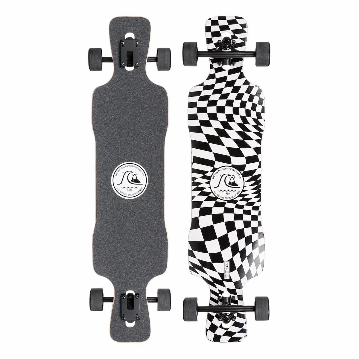 Skate Completo Longboard Quiksilver Check Mate 40" x 9.25" en color blanco y negro