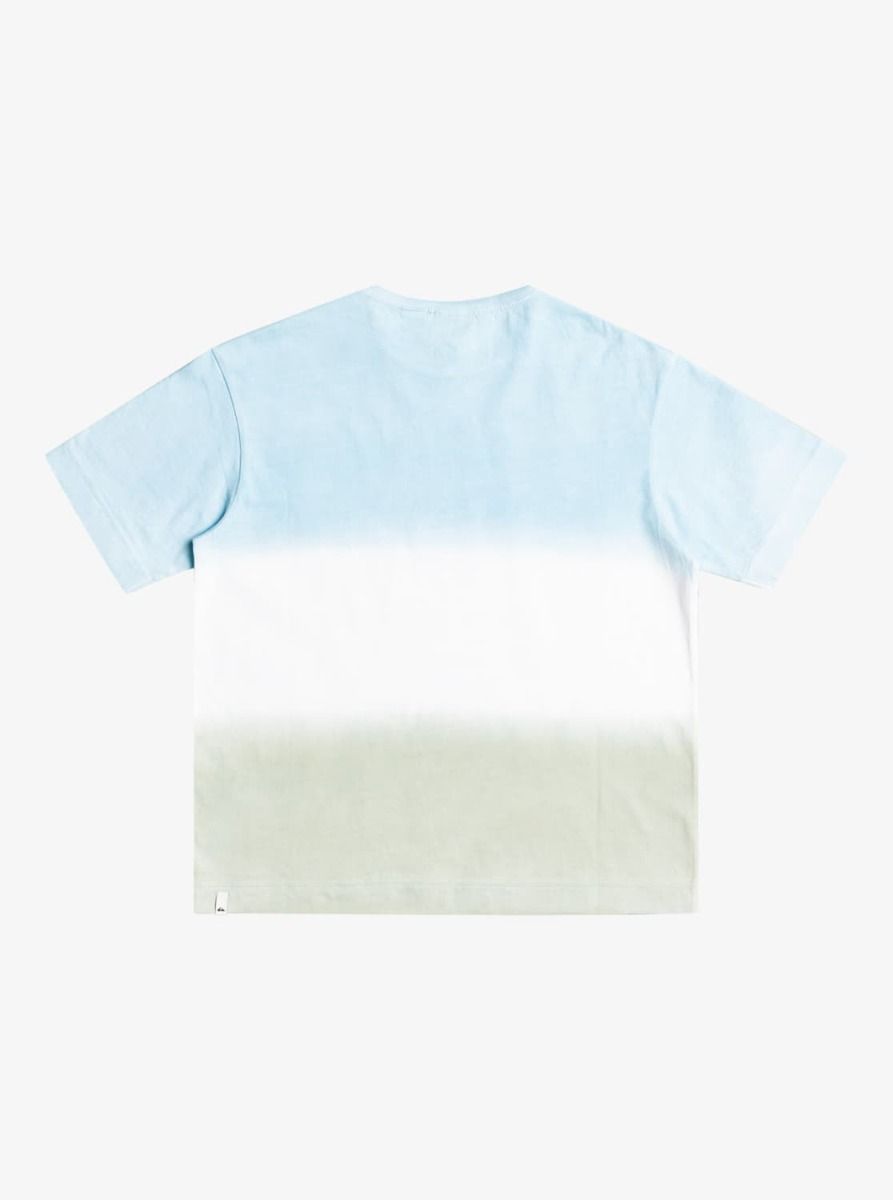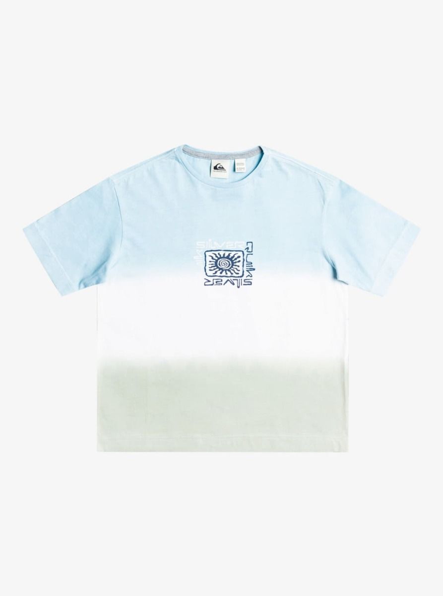 Esta camiseta de corte extra-grande cuenta con cuello amplio acanalado, manga corta, tejido sometido a tratamiento Tie Dye y estampado original Quiksilver en el pecho.