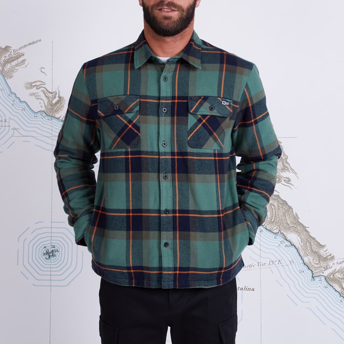 La sobrecamisa para hombre Dawn Patrol Shacket verde (Green) de Salty Crew está confeccionada con sarga de 100% algodón de peso medio (215gsm).