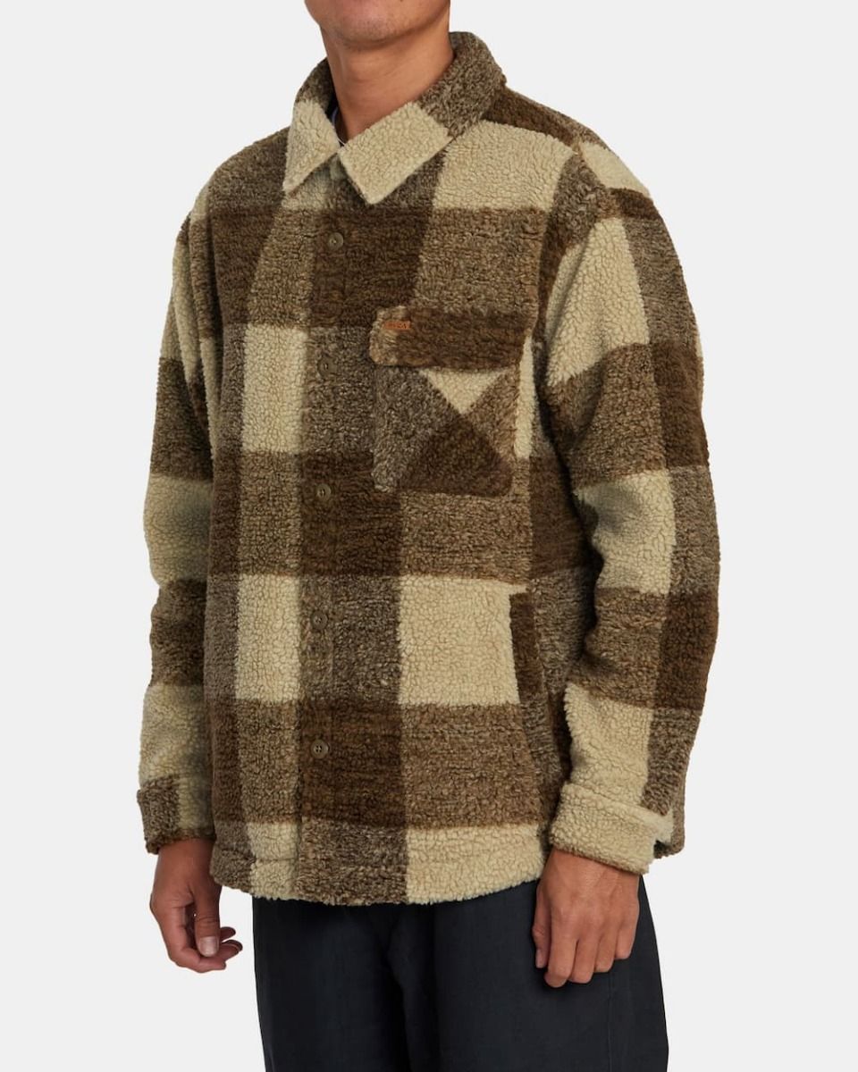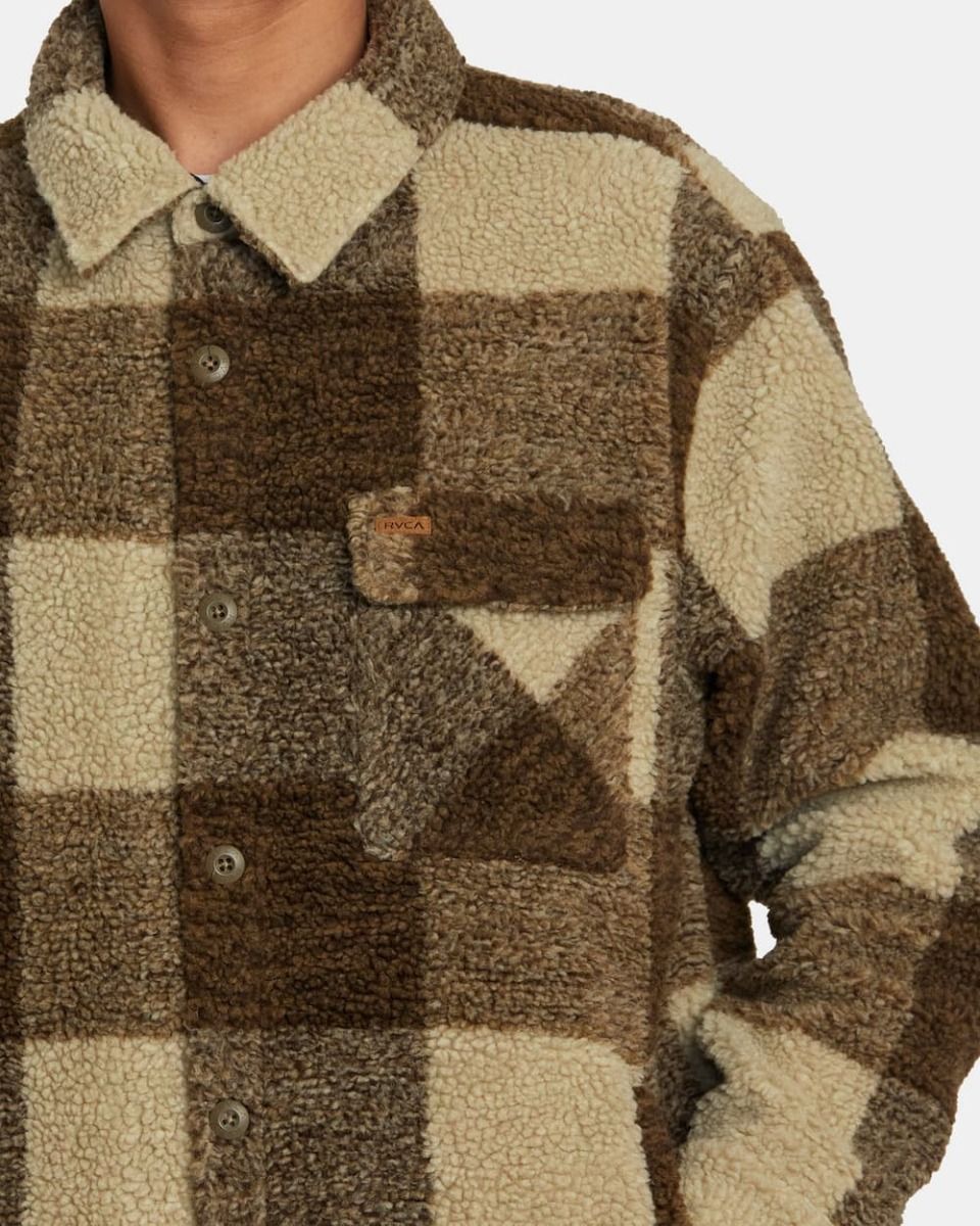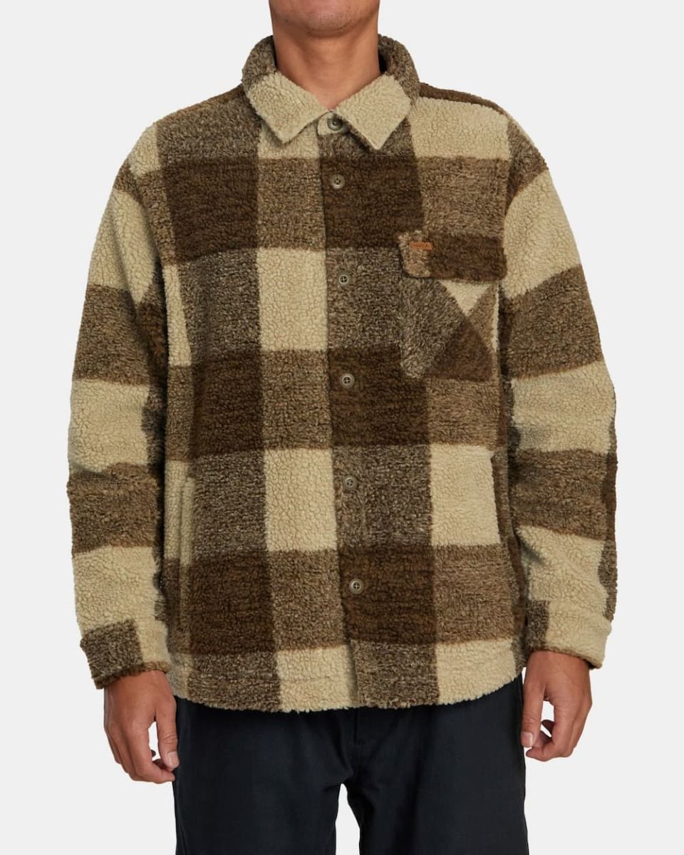 La sobrecamisa polar para hombre Lockheart Sherpa Fleece en tono caqui con estampado a cuadros (Khaki) de RVCA está confeccionada con cálido tejido sherpa jacquard de 100% poliéster.