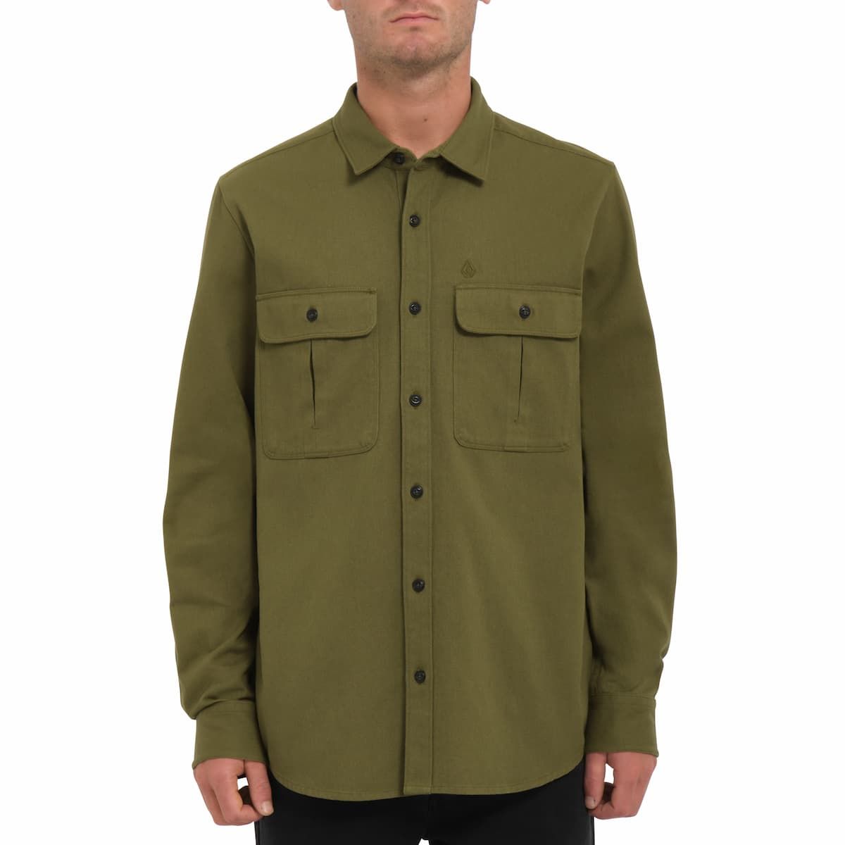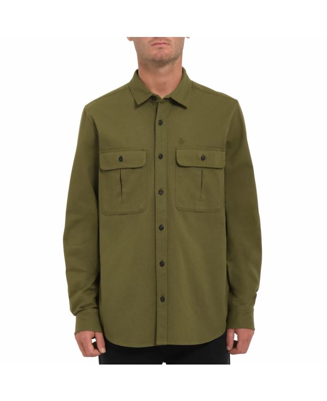 La sobrecamisa para hombre Stone Benchmark LS Overshirt en verde (Expedition Green) de Volcom está confeccionada con 100% lona de algodón.