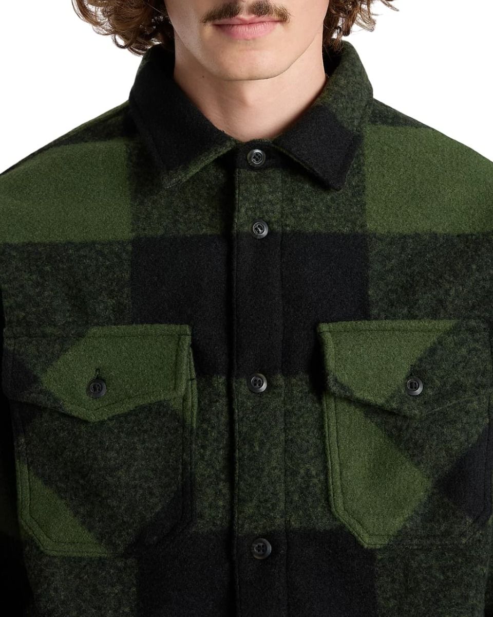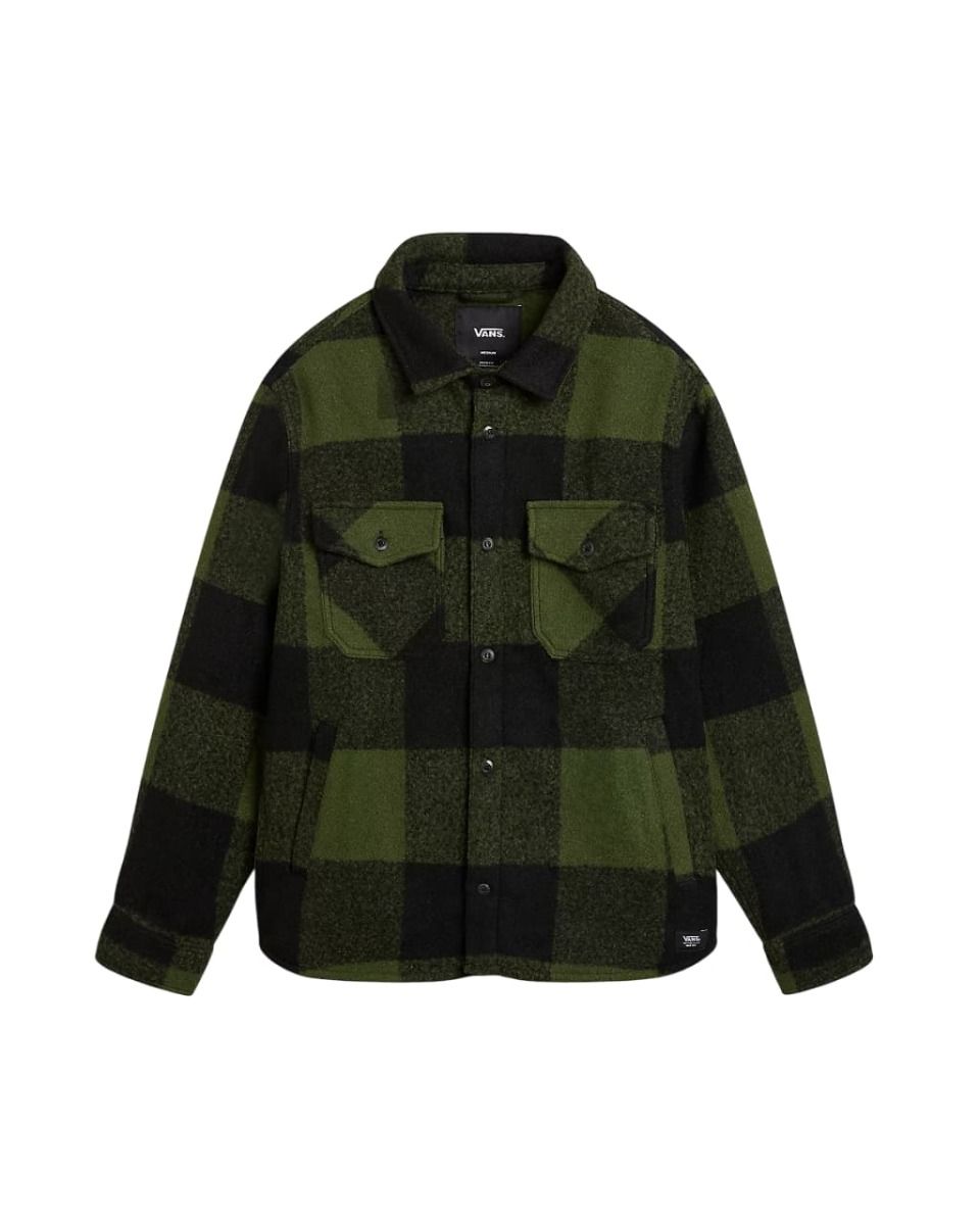 Sobrecamisa Vans Denby Fuzzy Shacket en color negro y verde para hombre