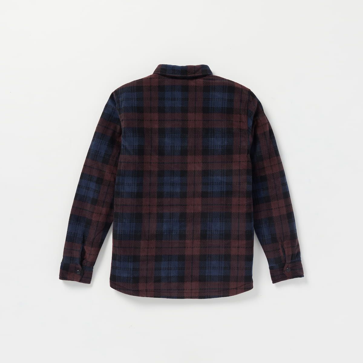 La sobrecamisa de forro polar para hombre Bowered Fleece LS Over Shirt en tono granate con estampado a cuadros (Merlot) de Volcom está confeccionada con tejido de felpa de 70% poliéster y 30% poliéster reciclado (195g).