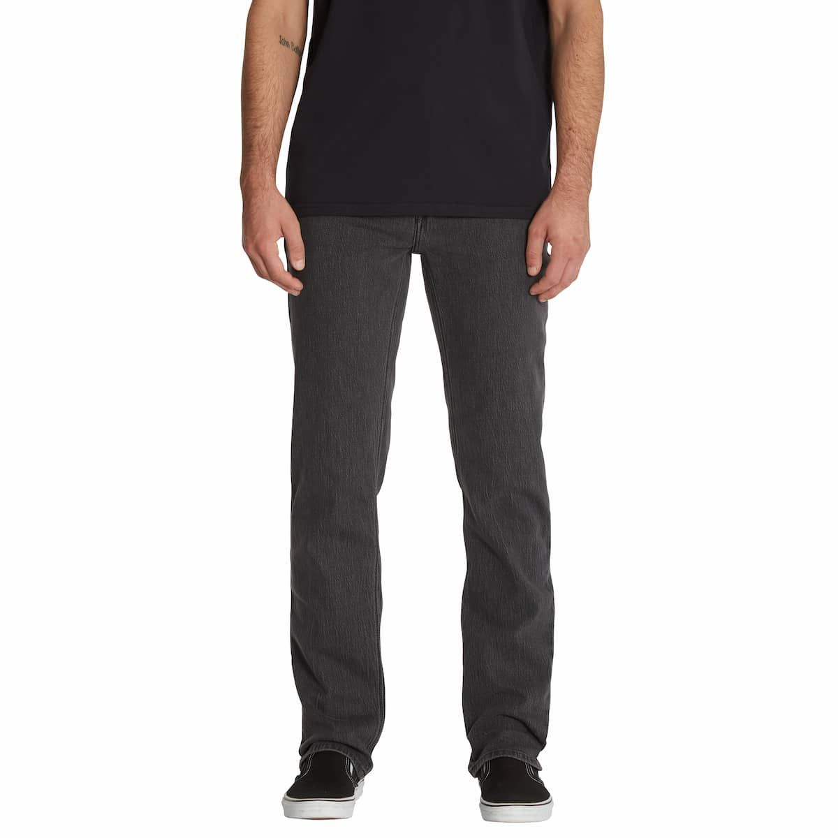 Estos vaqueros de corte moderno cuentan con pernera recta, tiro normal, abertura de pernera de 41cm, tono negro lavado vintage con un ligero jaspeado y los detalles característicos de Volcom Brand Jeans.