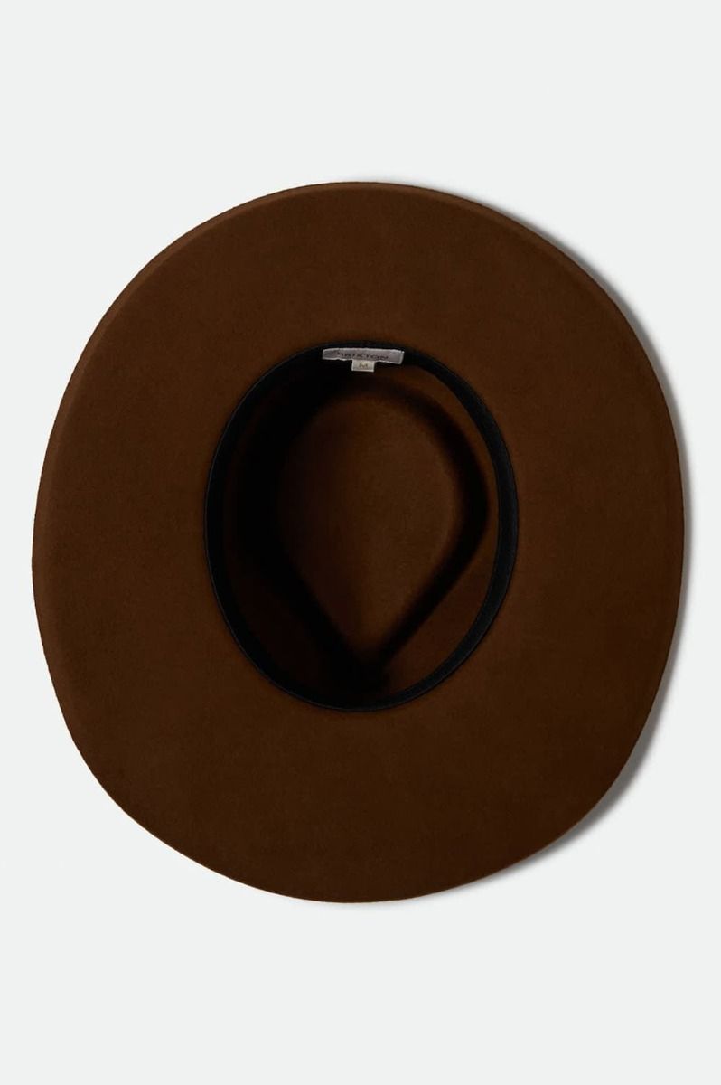 Sombrero Brixton Marlow mujer en fieltro color café. Ala ancha, estructura rígida y ajuste cómodo con banda que absorbe la humedad. Estilo y funcionalidad unidos.