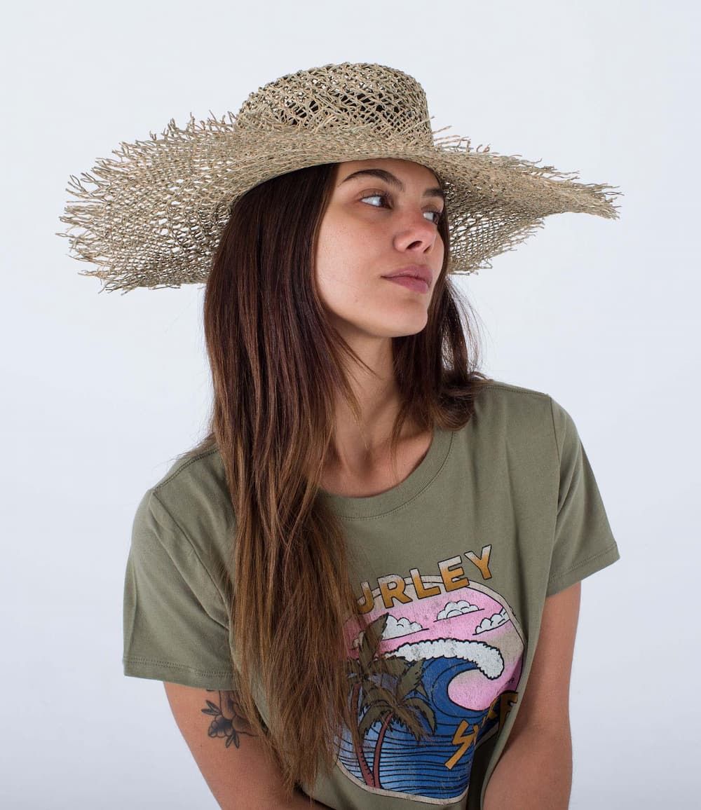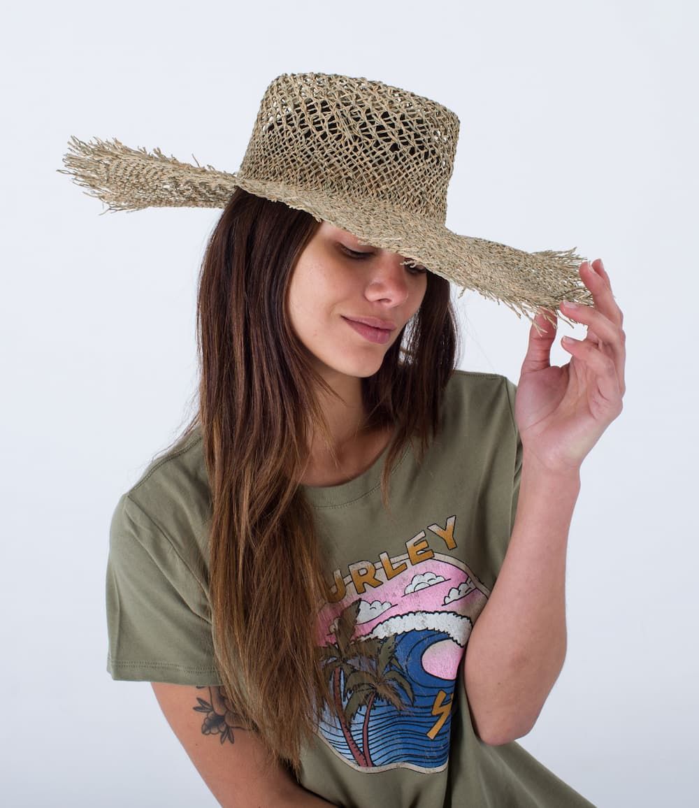 El gorro de paja para mujer Women's Lisbon Straw Hat en beige de Hurley está confeccionado con paja auténtica 100%.