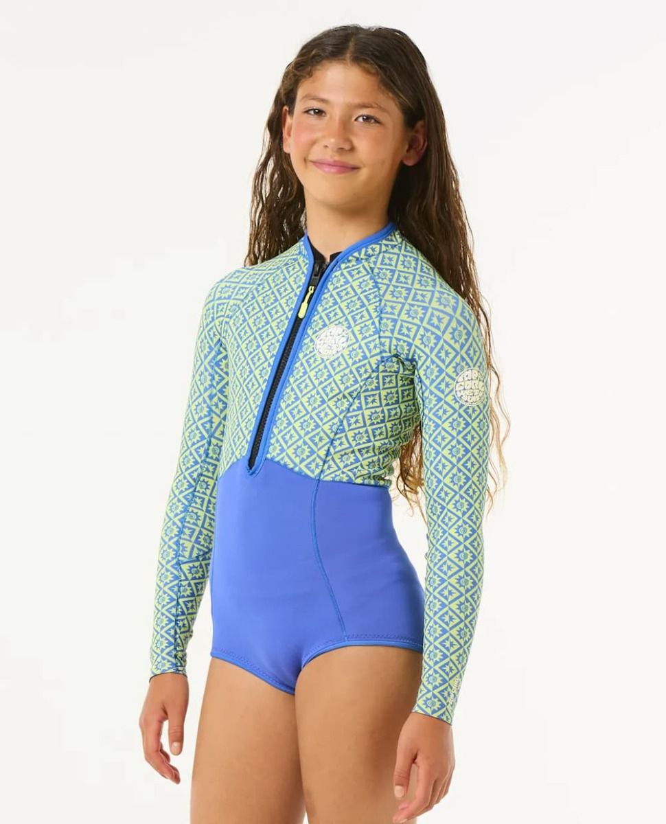 Traje de Neopreno Corto Rip Curl Junior G-Bomb con cremallera frontal 1.5mm Spring en color azul para niña (8-16 años)