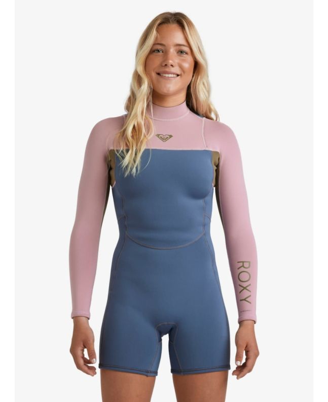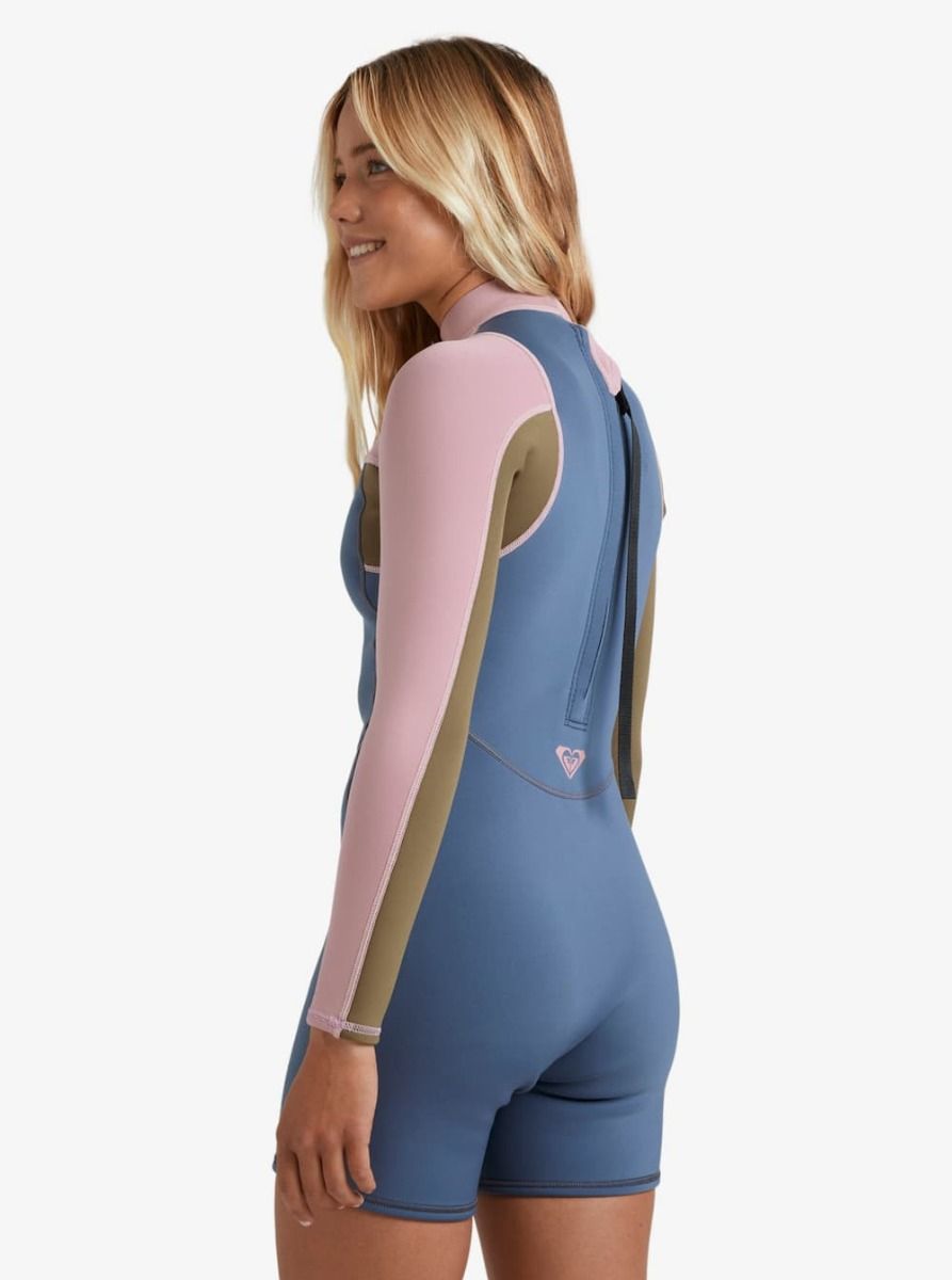 Traje de surf corto Roxy Prologue+ 2/2mm con manga larga y cremallera posterior en color Ash para mujer