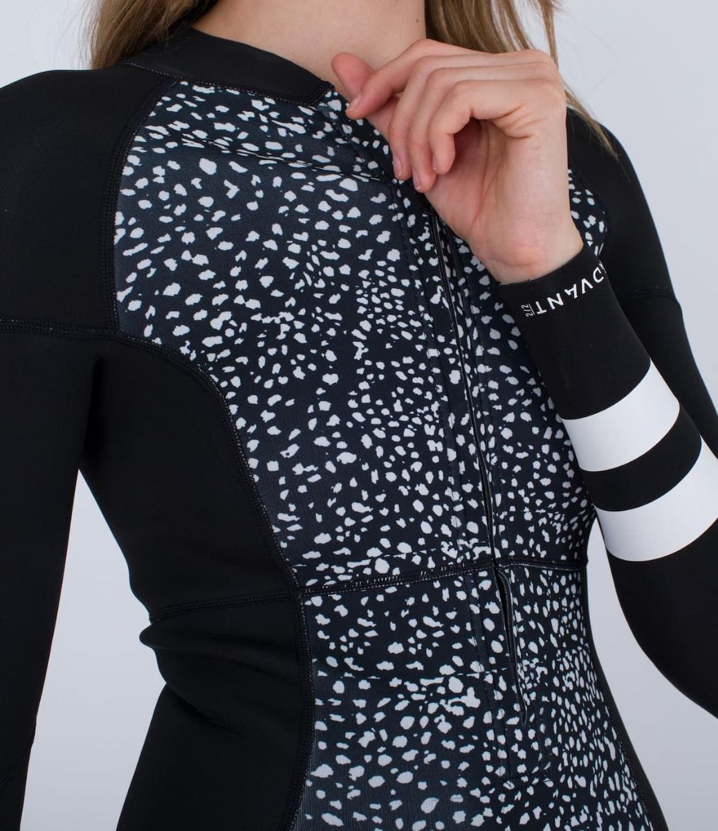 Neopreno de primavera con manga larga y cremallera frontal Hurley Advant Springsuit 2/2mm en color negro con animal print para mujer
