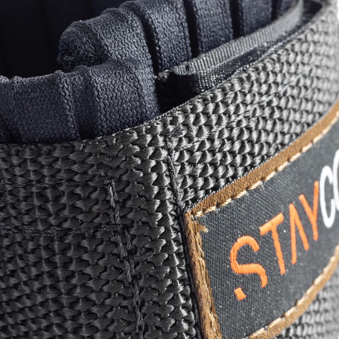 Este leash 9' de olas grandes color negro presenta correa de poliuretano extruido con 8mm de grosor, un puño más ancho, salva-cantos, a la vez que menos estiramiento y un agarre más fuerte que los leash de la gama estándar de Stay Covered.