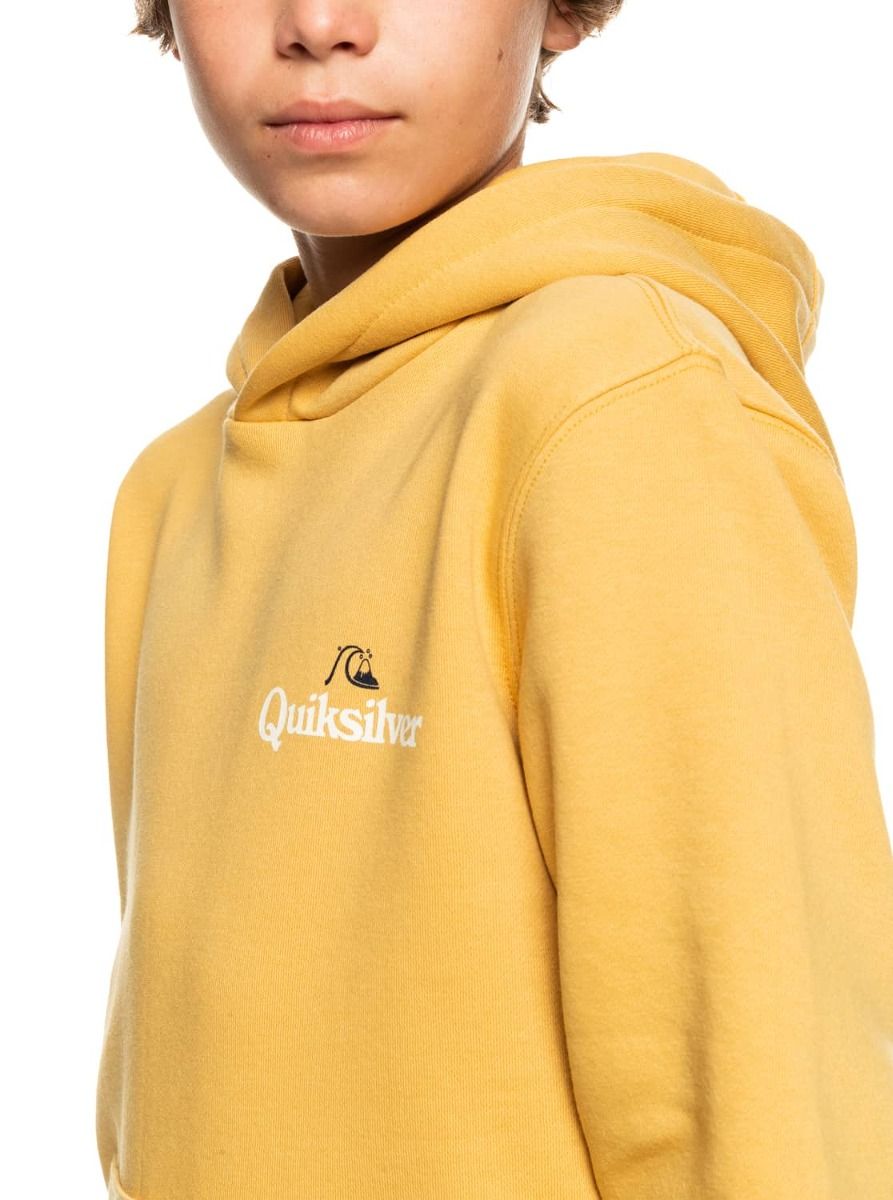 La sudadera con capucha para chicos de entre 8 y 16 años Stir it up de Quiksilver en color amarillo (Rattan) ha sido confeccionada con 55% de algodón orgánico y 45% de poliéster reciclado.