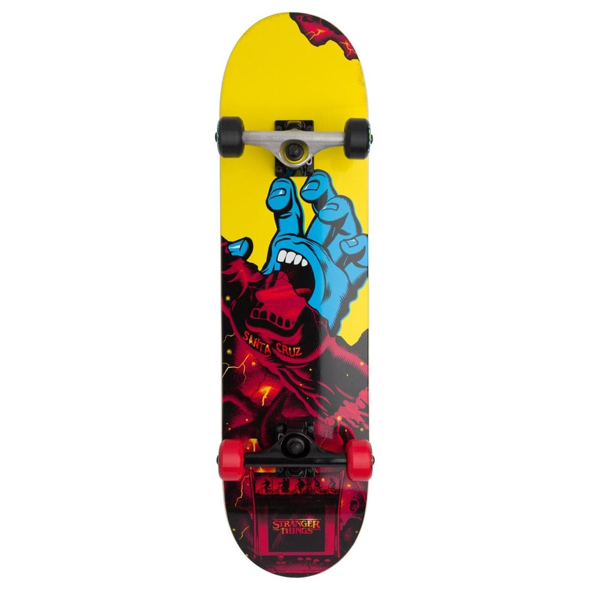 El Skate Completo Stranger Things Screaming Hand Full 8.00" x 31.25" multicolor tiene el sello de garantía Santa Cruz Skateboards.