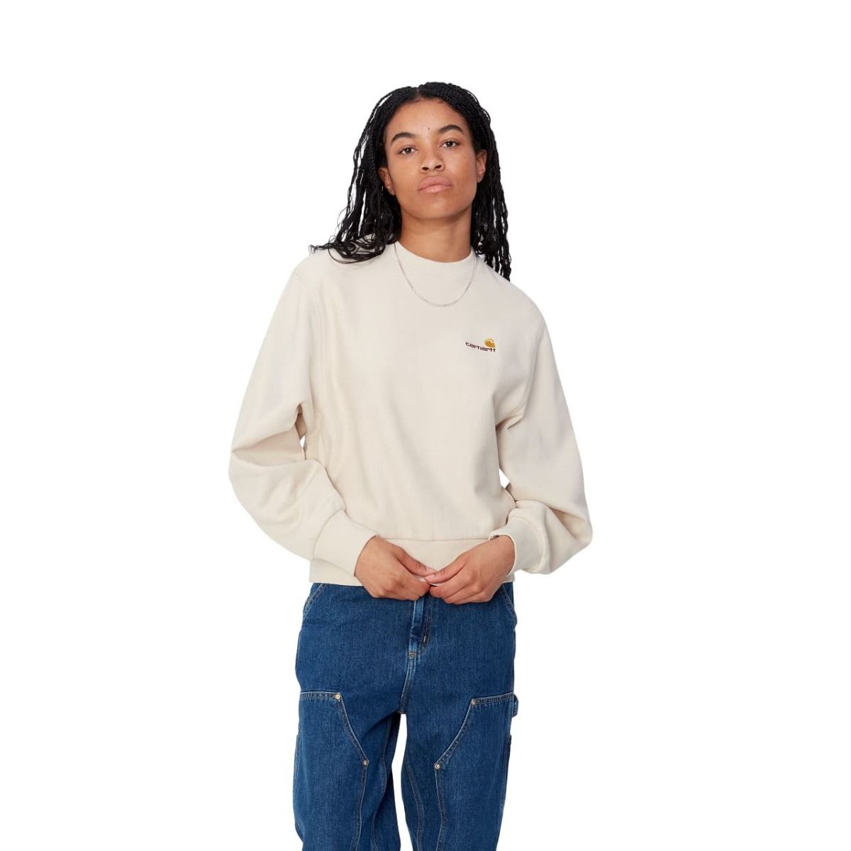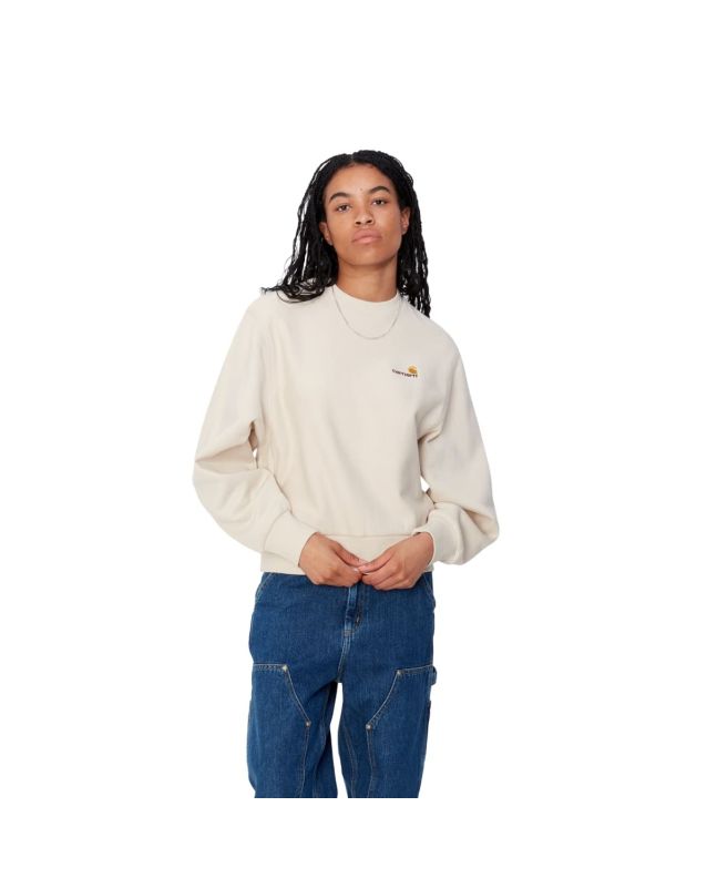 La sudadera American Script Sweat color Moonbeam para mujer de Carhartt Work In Progress no puede faltar en tu colección de moda Streetwear.