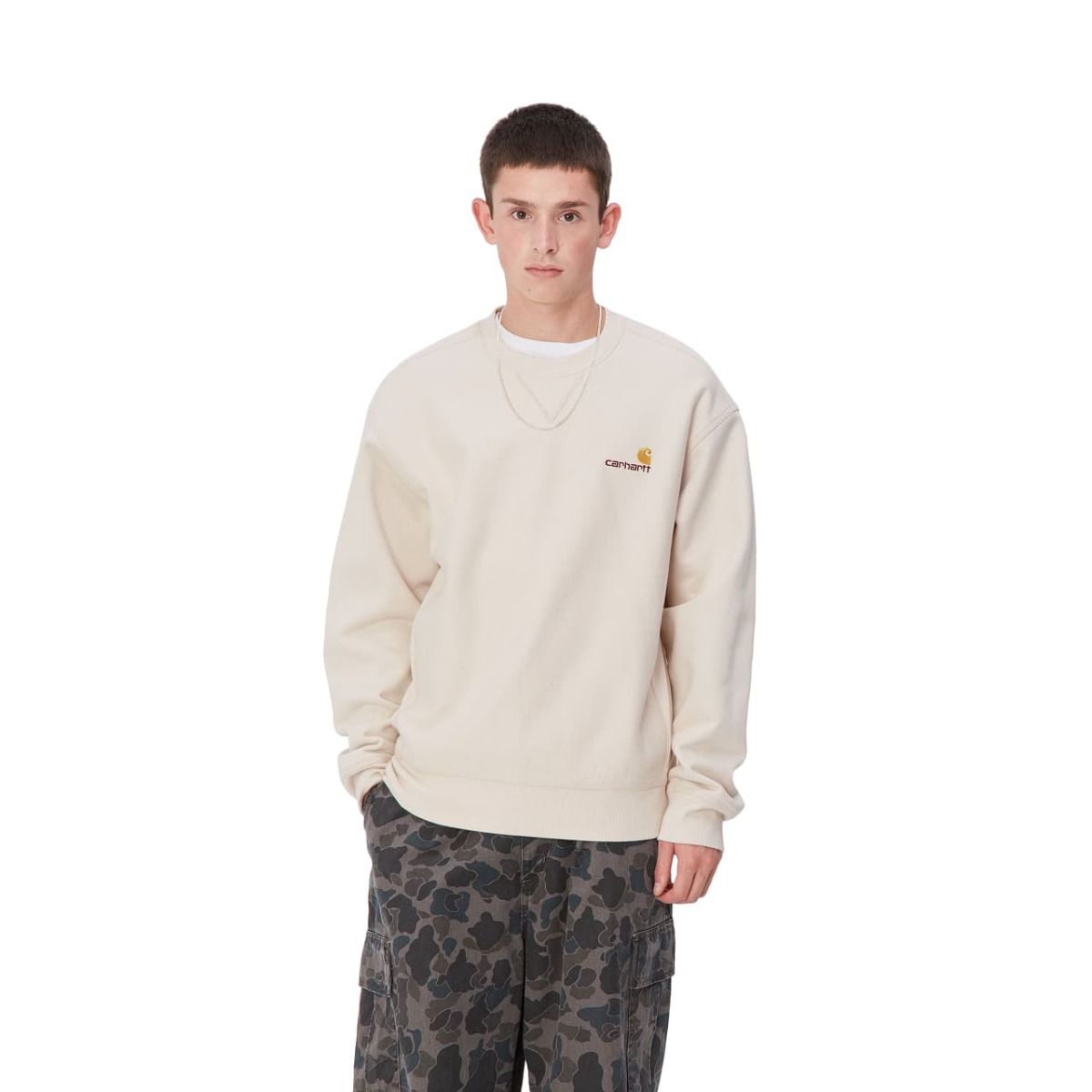 Sudadera Carhartt WIP American Script Sweatshirt en color blanco lunar para hombre