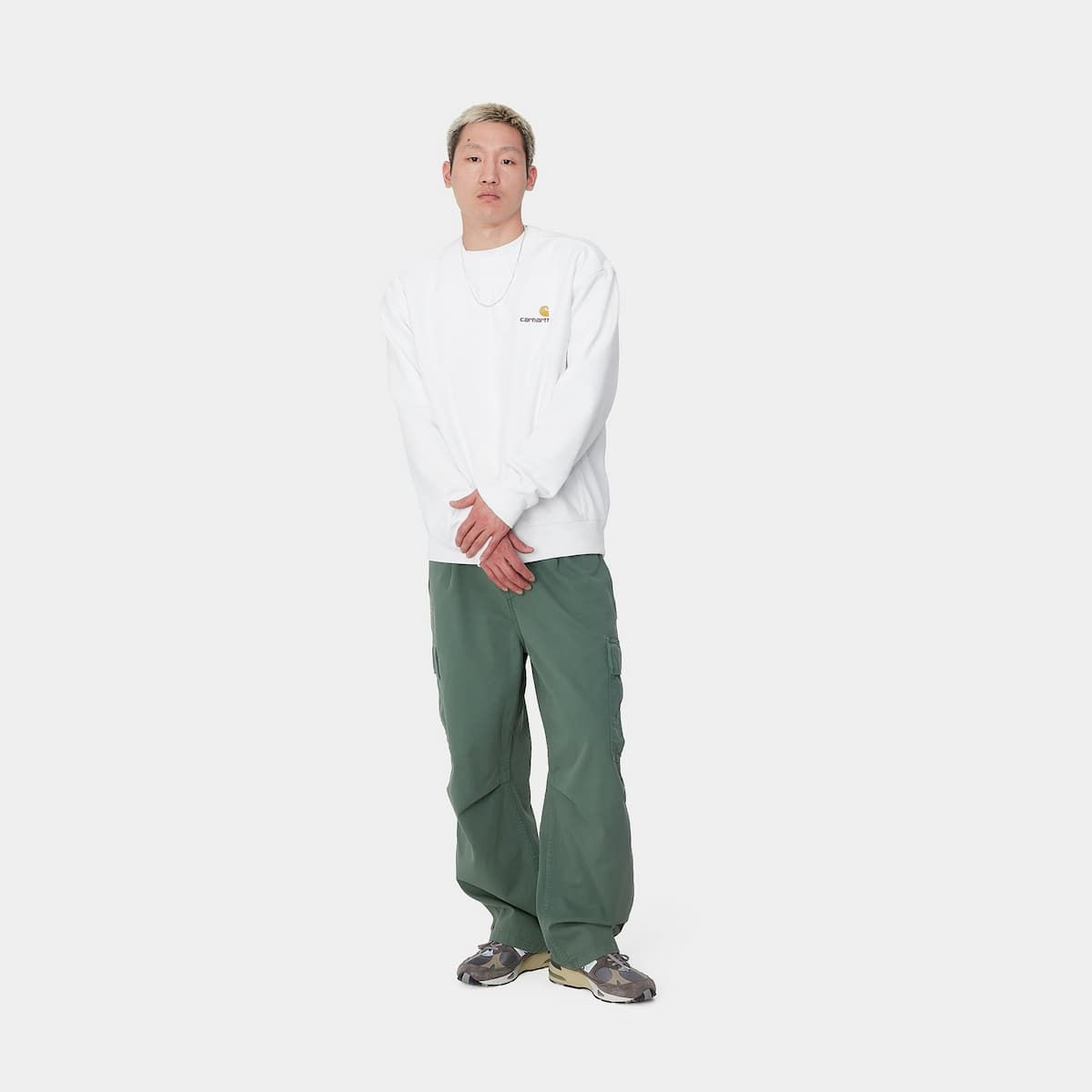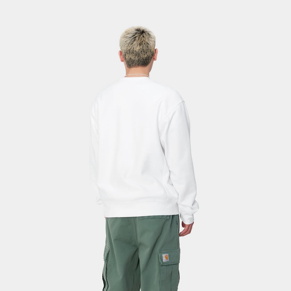 Esta sudadera básica blanca de ajuste holgado está viene con tejido peinado para proporcionar mayor suavidad y calidez sin renunciar a la transpirabilidad. También cuenta con cuello redondo, puños y cintura ribeteados y bordado americano del logo de Carhartt WIP en el lado izquierdo del pecho.