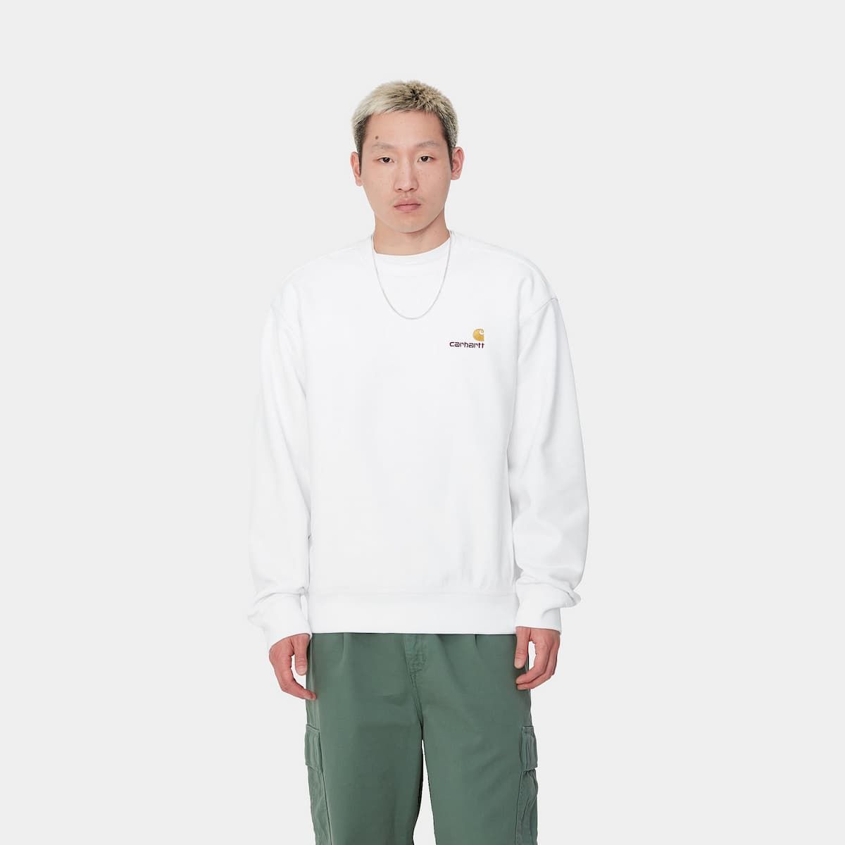 La sudadera para hombre American Script Sweatshirt en tono blanco (White) de Carhartt WIP está fabricada con 80% algodón y 20% poliéster. (420g/m2).