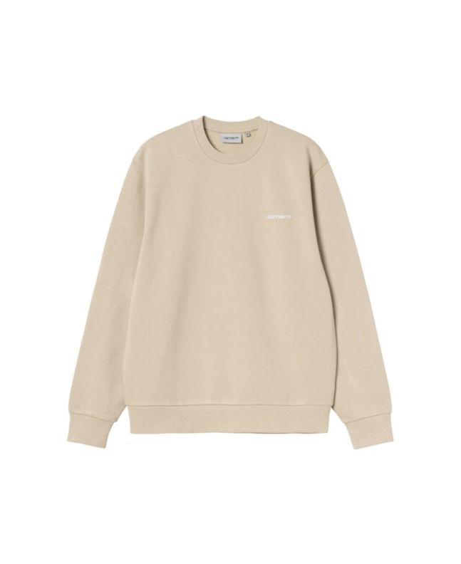 Sudadera Carhartt WIP beige 100% algodón pesado con bordado Script en blanco y corte regular, ideal para uso urbano diario.