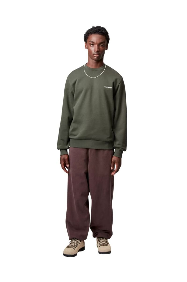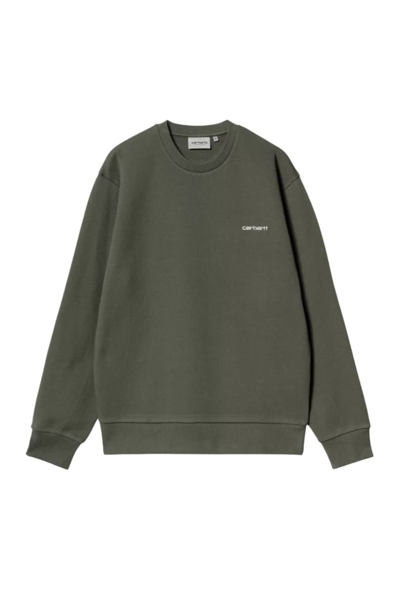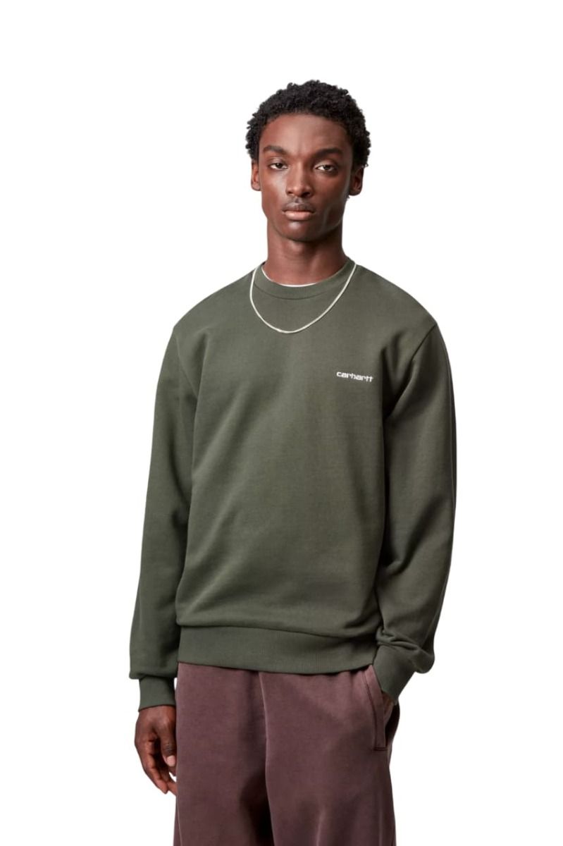 Sudadera Carhartt WIP Script Embroidery Sweatshirt en color verde opuntia con el logo en blanco para hombre