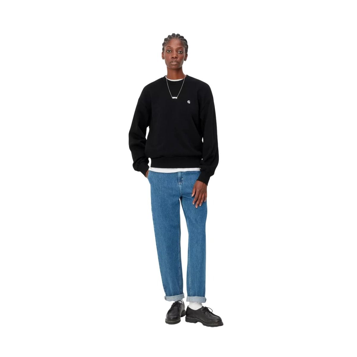La sudadera para mujer W' Casey Sweatshirt en tono negro con el logo en gris plateado (Black-Silver) de Carhartt WIP está confeccionada con 100% punto de algodón pesado (420g/sqm).