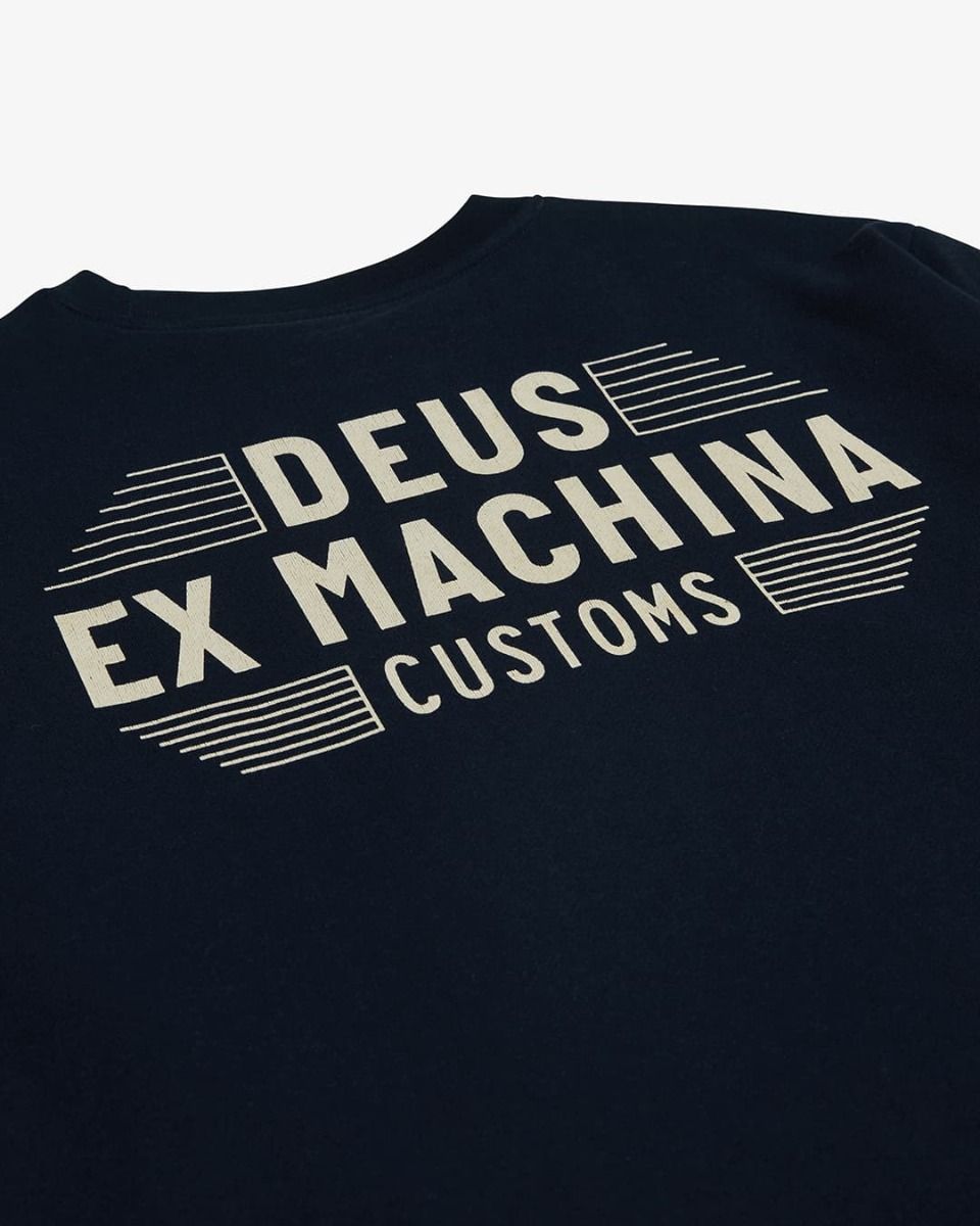 Este crew de ajuste regular cuenta con cuello redondo, puños y bajo ribeteados y estampado vintage "Deus Ex Machina Customs" en el lado izquierdo del pecho y en la espalda.