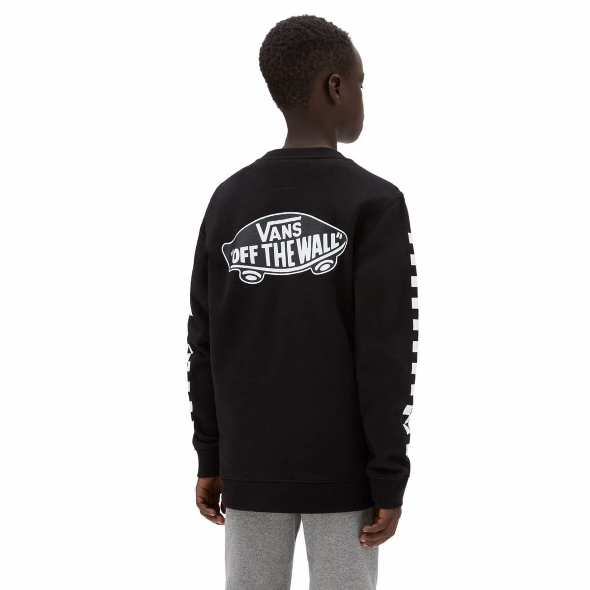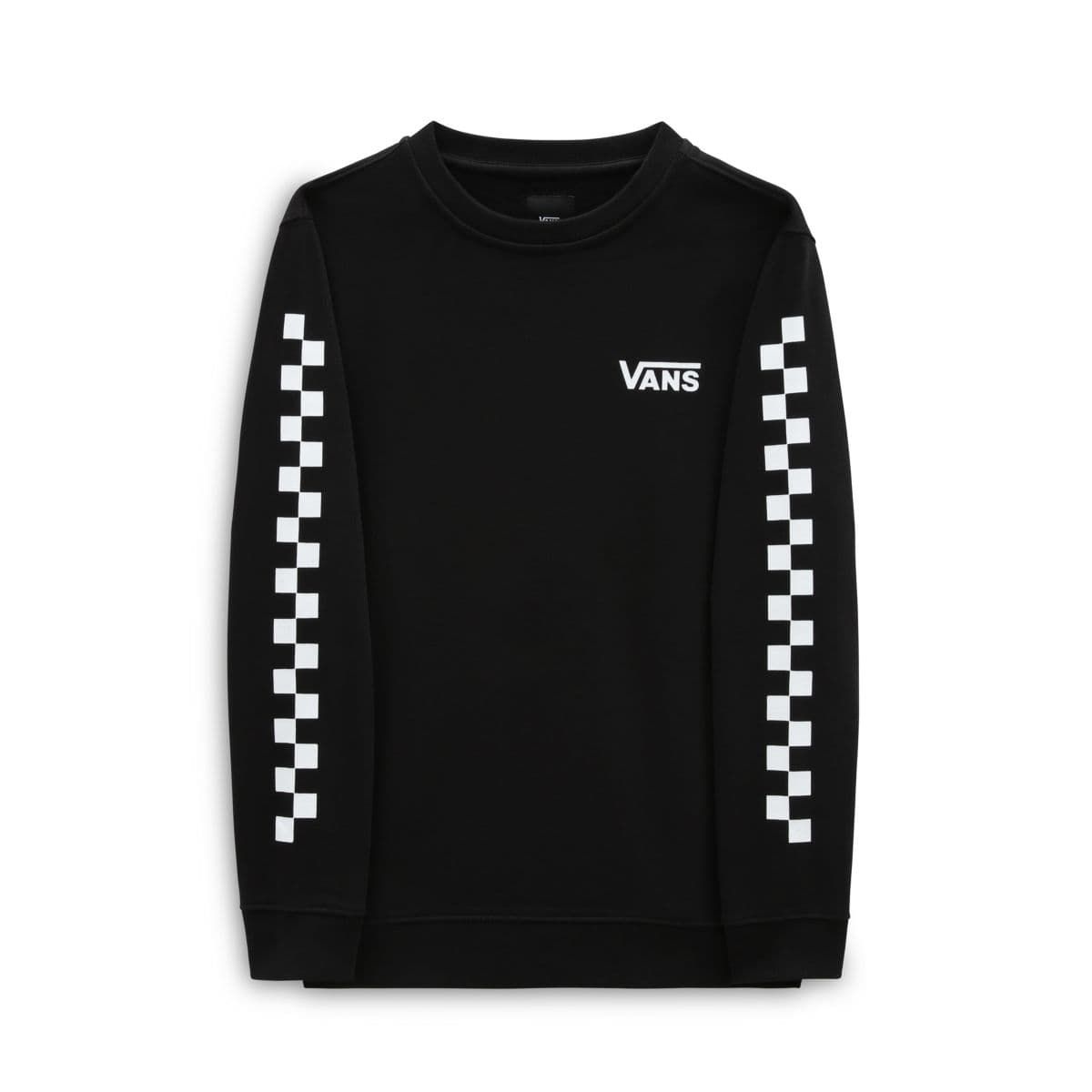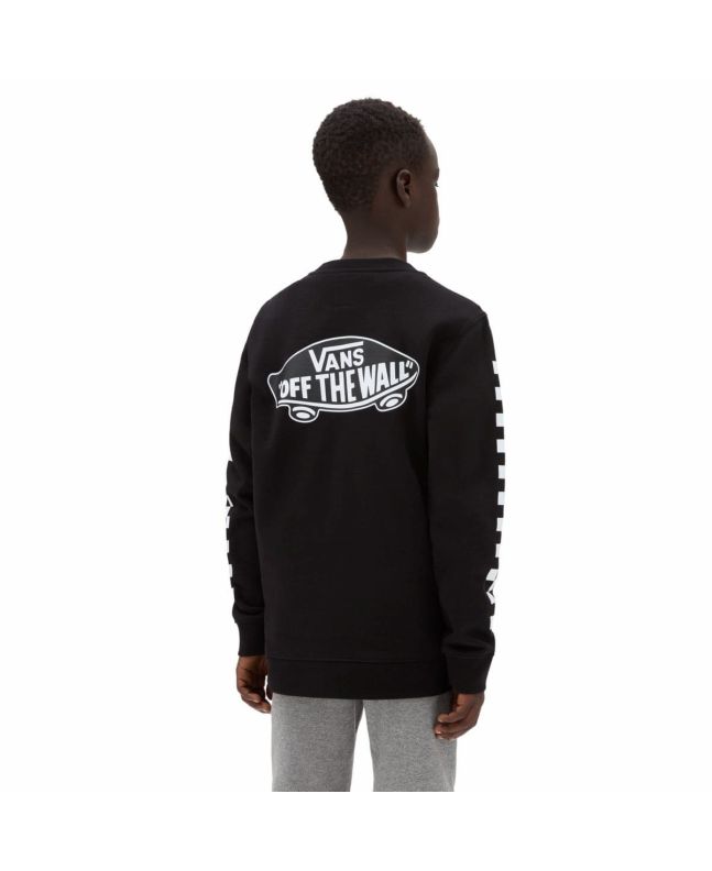Este crew de corte clásico cuenta con forro interior, cuello redondo, el logo de Vans serigrafiado en el lado izquierdo del pecho, detalles checkerboard en las mangas y el logo del monopatín de "Vans Off The Wall" impreso en la espalda.