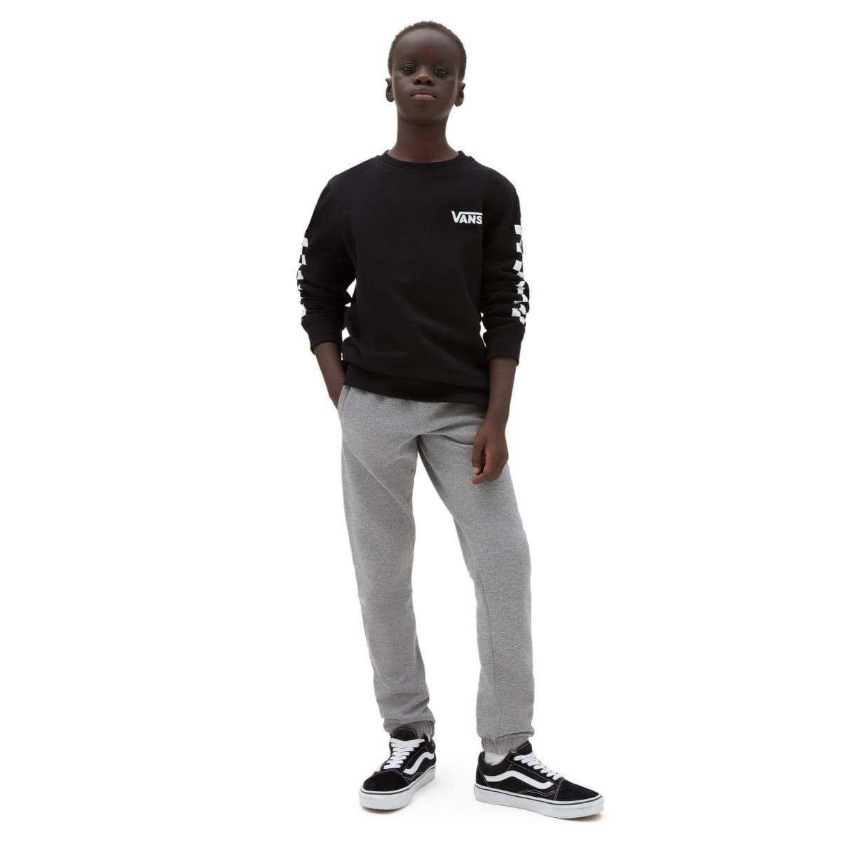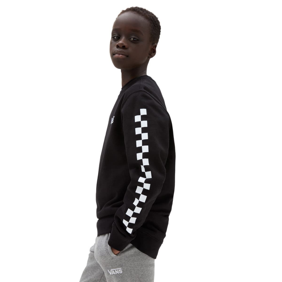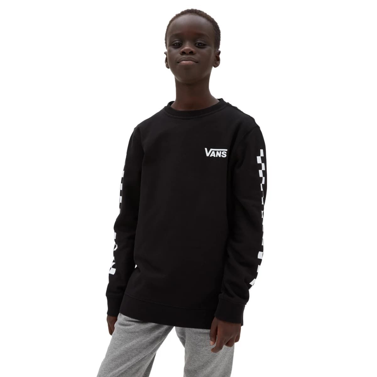 La sudadera para chicos de entre 8 y 14 años Exposition Check Crew en negro (Black) de Vans está confeccionada con suave tejido de felpa en mezcla de 70% algodón y 30% poliéster.