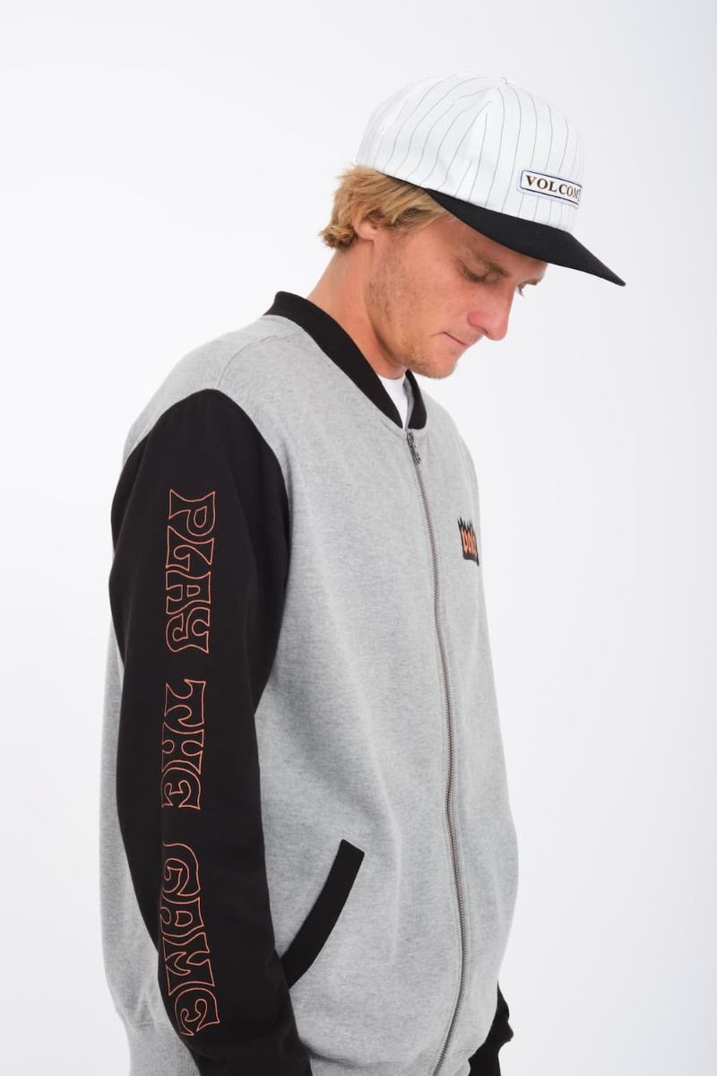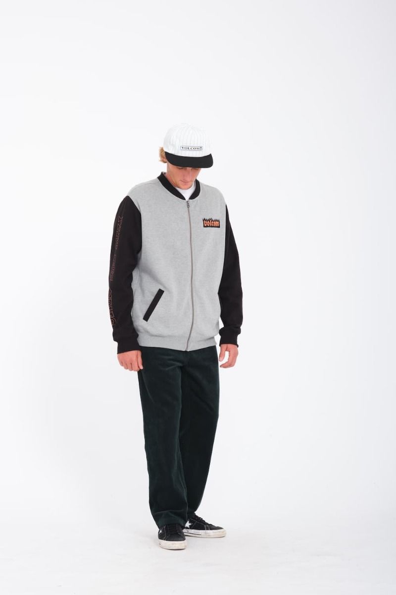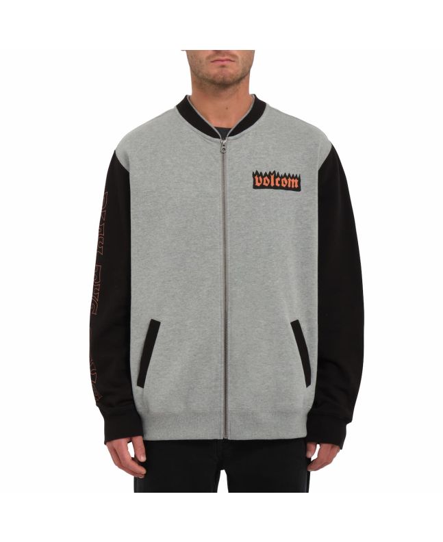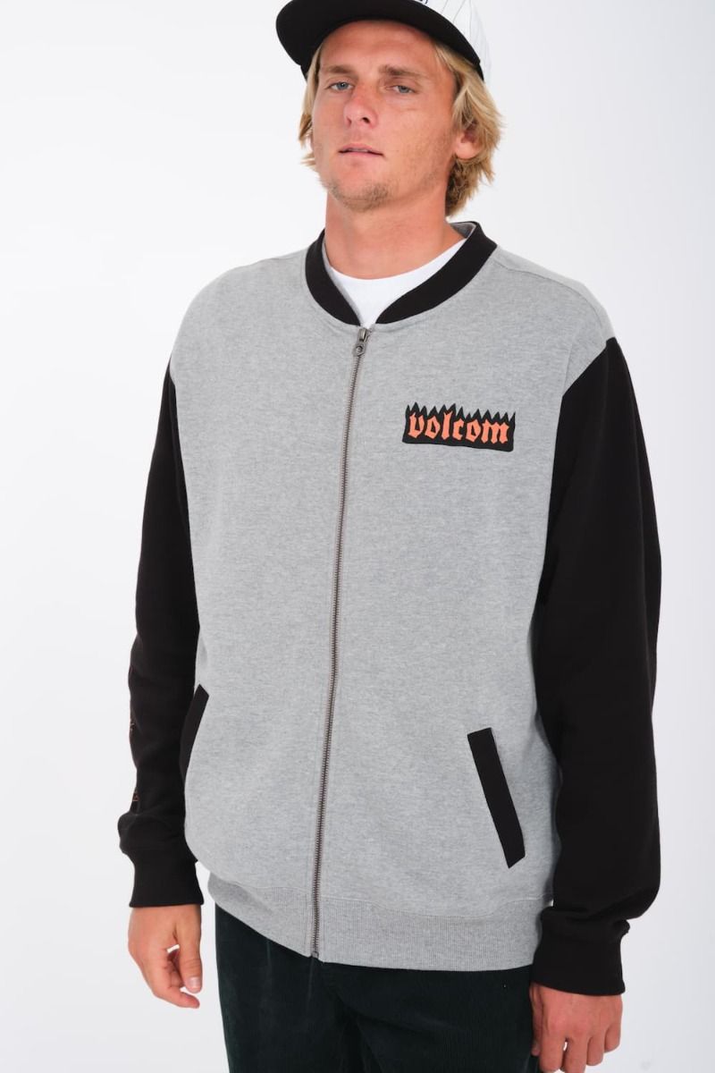 La sudadera para hombre Nando Von Arb Zip en gris (Heather Grey) de Volcom está confeccionada con tejido afelpado en mezcla de 60% algodón y 40% poliéster reciclado Repreve™ (290g).