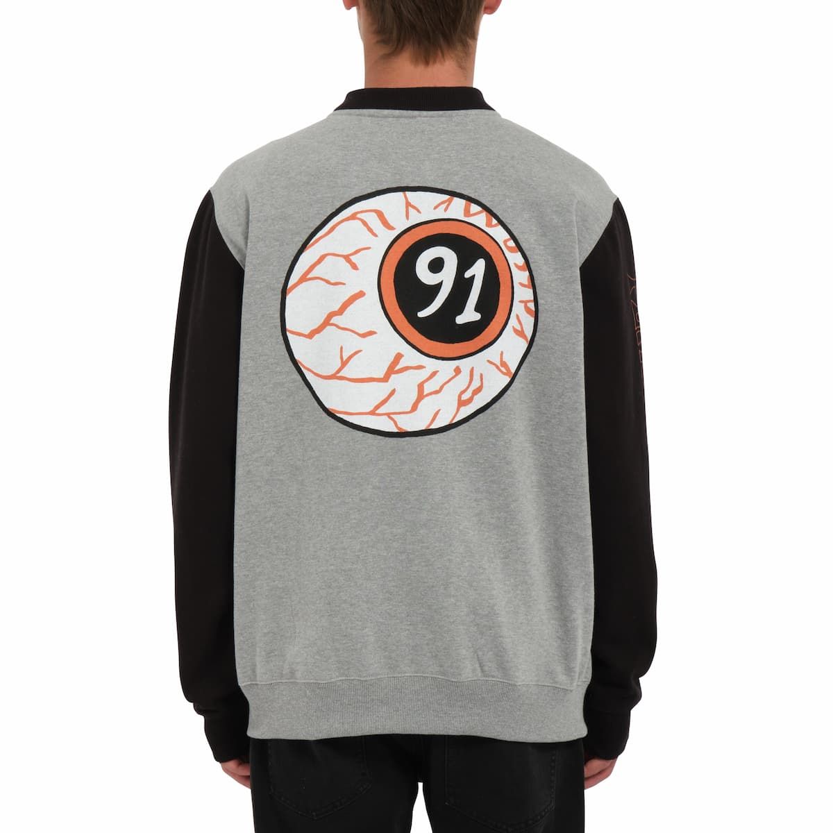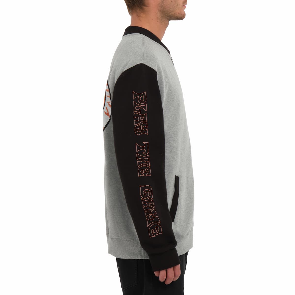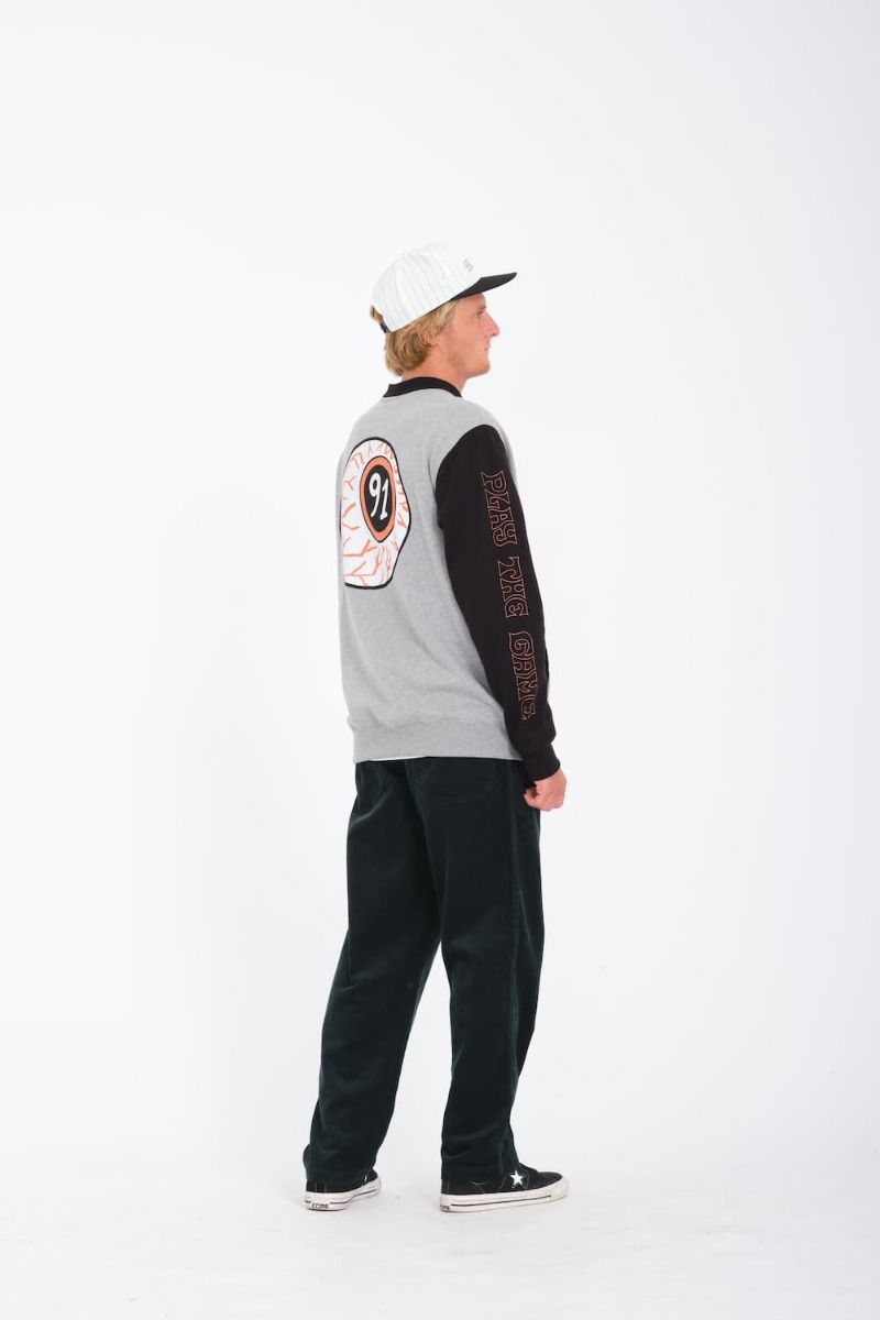 Esta sudadera tipo chaqueta de corte clásico, perteneciente a la Colección Featured Artist de Volcom, cuenta con tejido afelpado para mayor suavidad y calidez, cuello de canalé doble, cierre frontal de cremallera, bolsillos delanteros, mangas en contraste, diseños artísticos de Play the game by Nando Von Arb impresos en el pecho, las mangas y la espalda, junto con una etiqueta de Featured Artist tejida en la costura lateral.