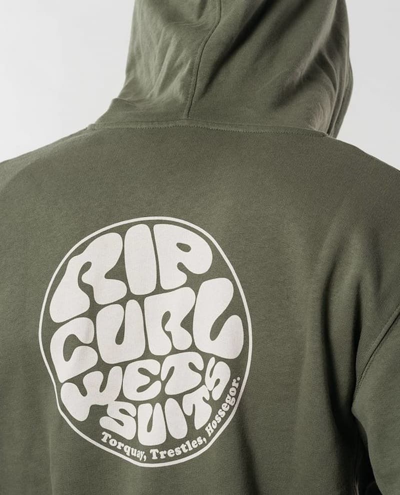 Este hoodie forro polar de corte estándar cuenta con cierre de cremallera, capucha con cordón de ajuste, bolsillos laterales, estampado monocolor, el clásico logo de Rip Curl Wetsuits estampado en contraste en el pecho izquierdo y la espalda, y una discreta etiqueta con el logo de la marca cosida en la manga izquierda.