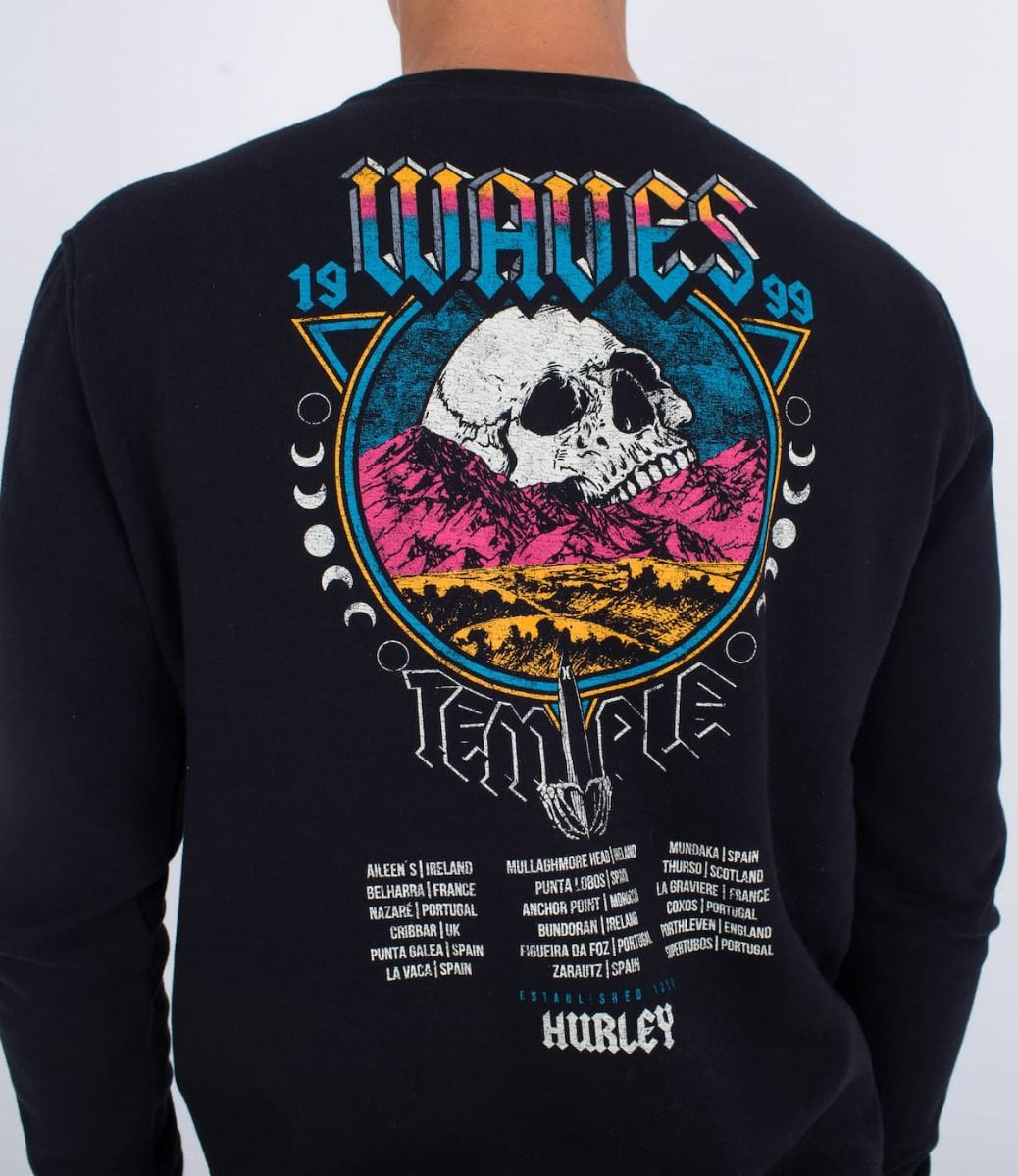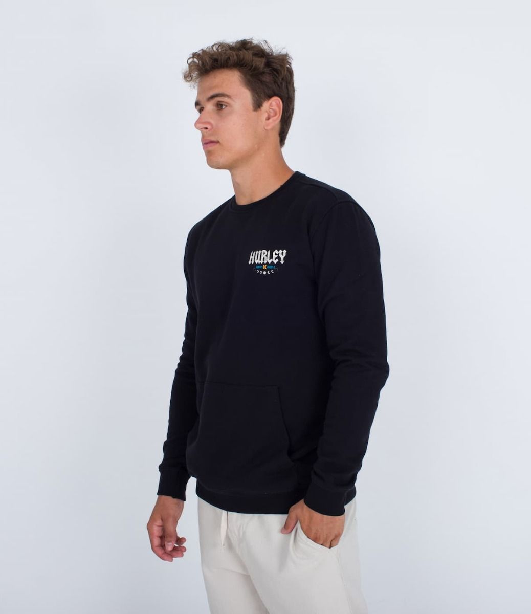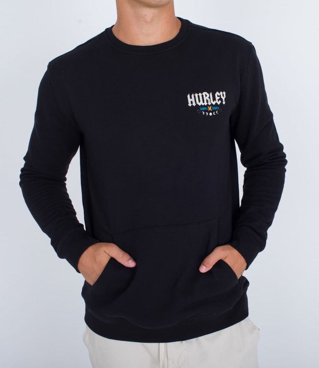 Este crew para hombre, perteneciente a la "Colección Wave Tour Series" de Hurley cuenta con suave forro polar cepillado, cuello redondo, puños y cintura acanalados, bolsillo delantero tipo canguro y serigrafiados artísticos de Wave Tour impresos en el lado izquierdo del pecho y en la espalda.