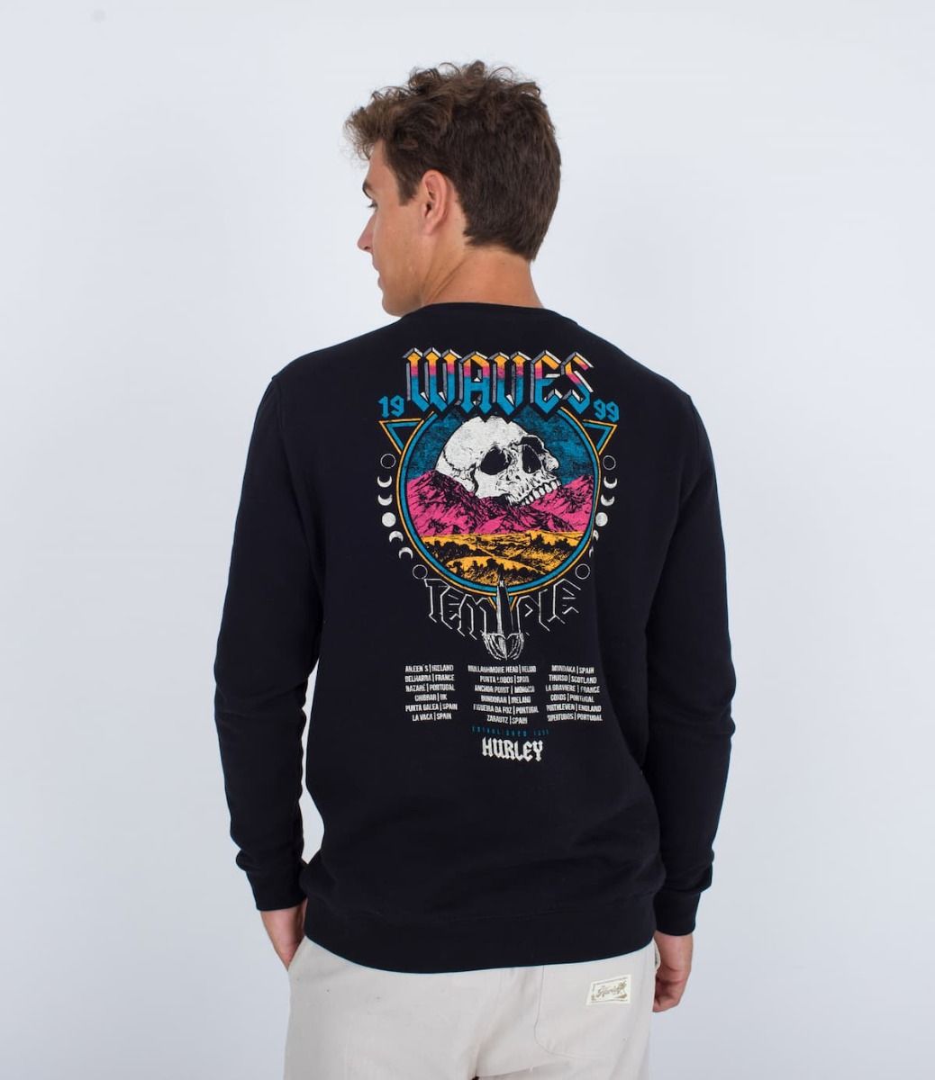La sudadera sin capucha para hombre Wave Tour Crew en negro (Black) de Hurley está confeccionada con tejido pre-encogido de 99% algodón y 1% poliéster.