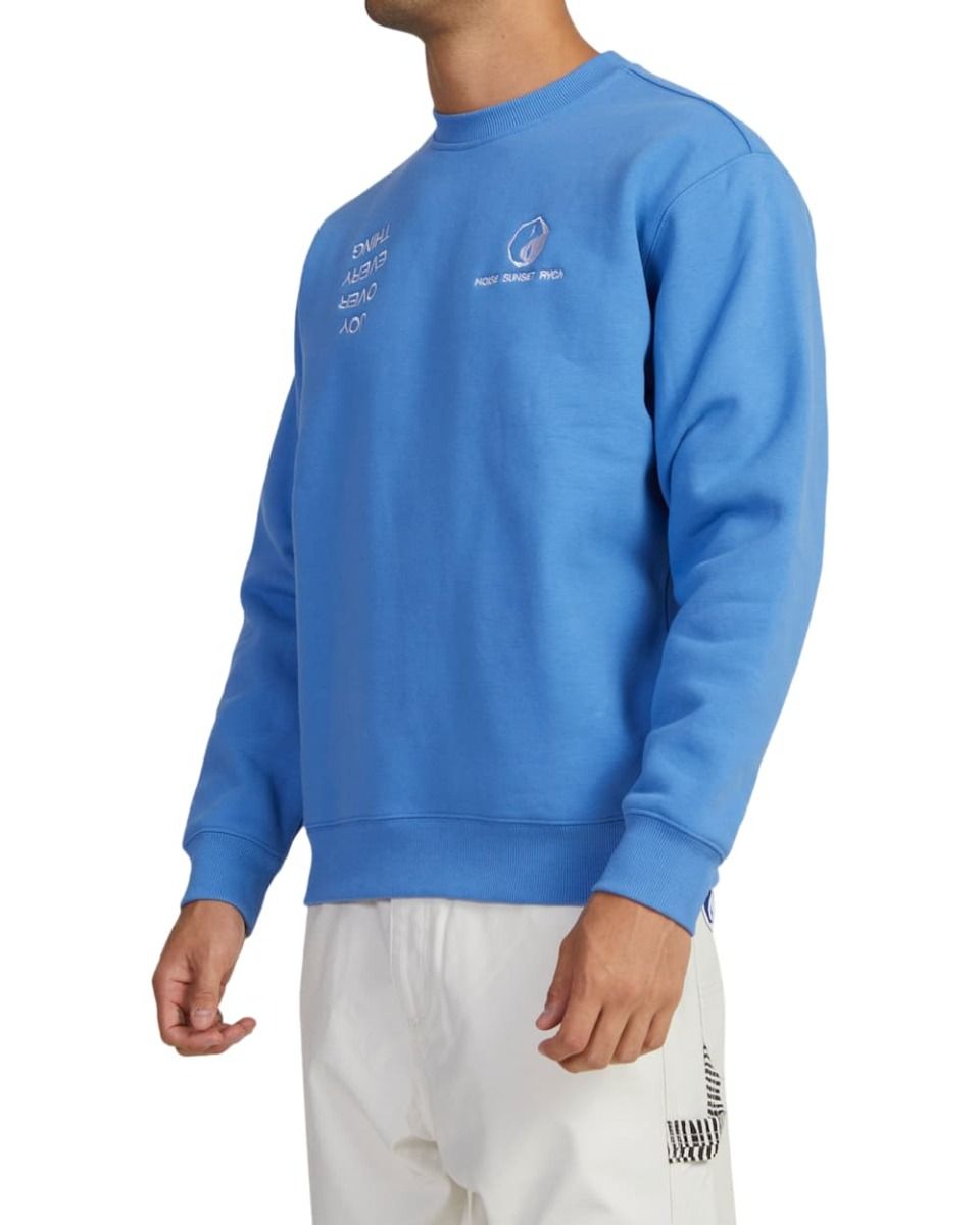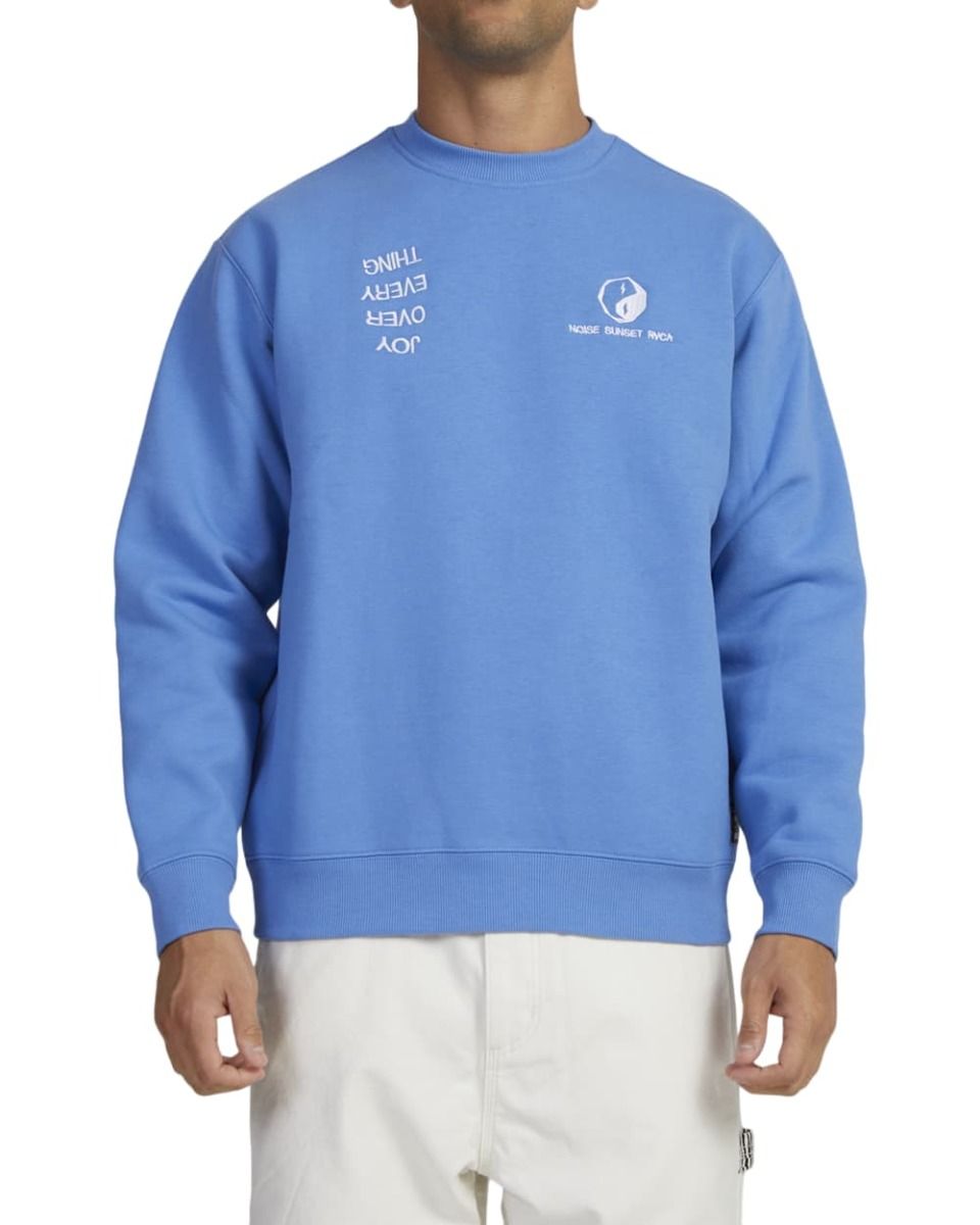 La sudadera para hombre Joy Fleece Crew en azul (Blue) de RVCA está confeccionada con tejido de alto gramaje en mezcla de 51% algodón y 49% poliéster (440g/m2).
