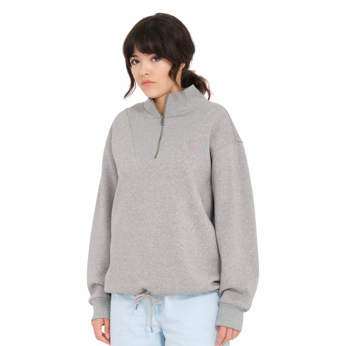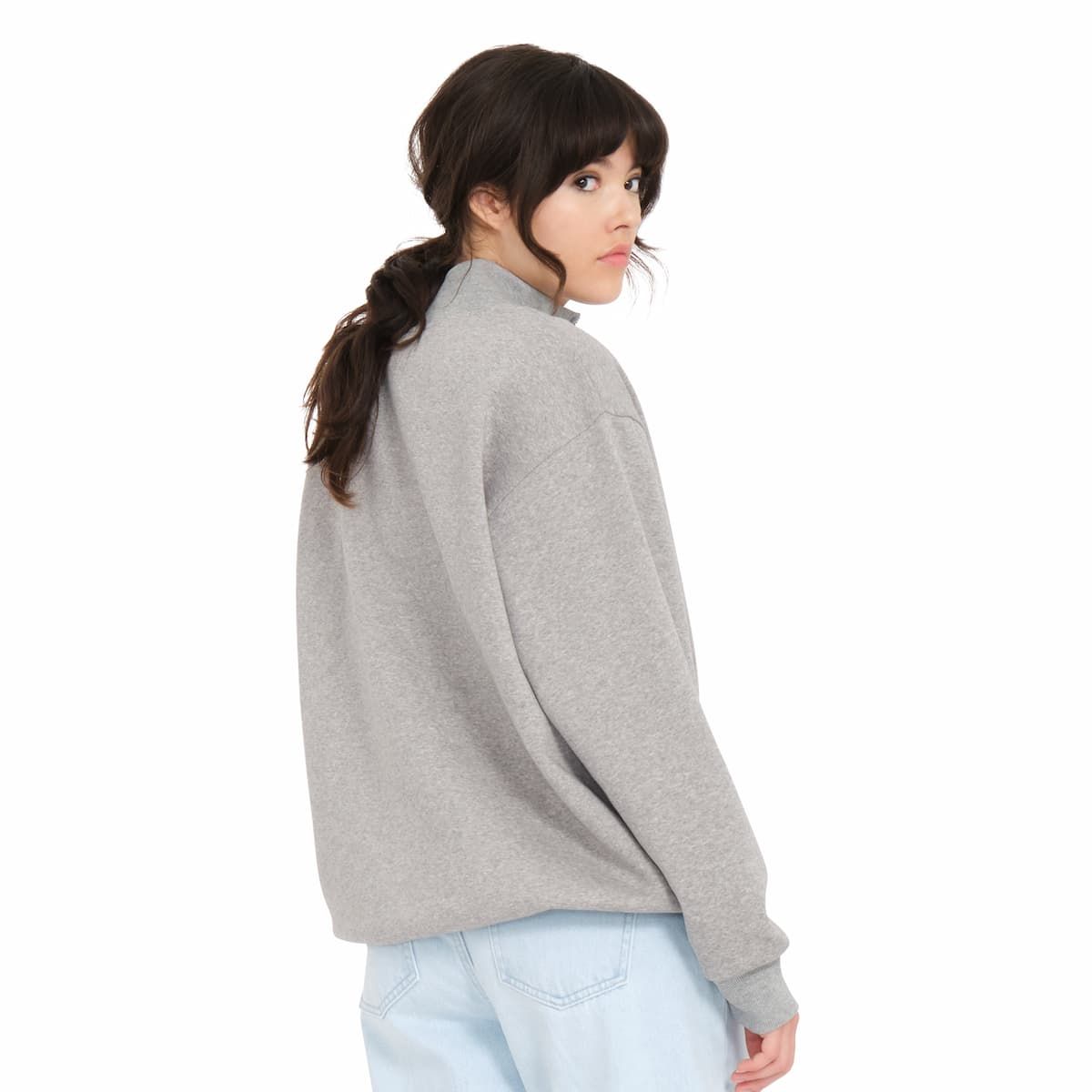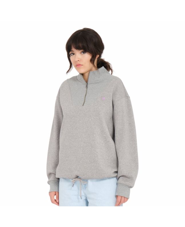 La sudadera con media cremallera para mujer Mocker Nucker en gris (Heather Grey) de Volcom está confeccionada con tejido suave en mezcla de 70% algodón y 30% poliéster (280g).